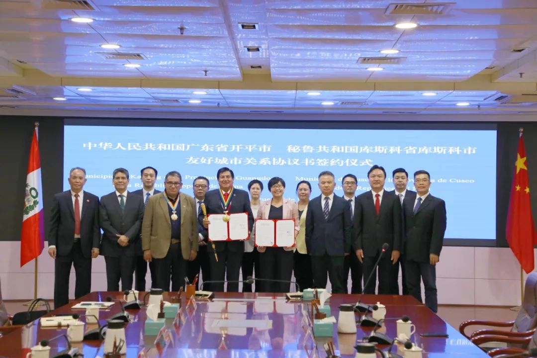 近日,秘魯共和國庫斯科省庫斯科市市長路易斯·貝爾特蘭·潘托哈·卡爾沃率團到訪開平,并與開平市締結友好城市關系。