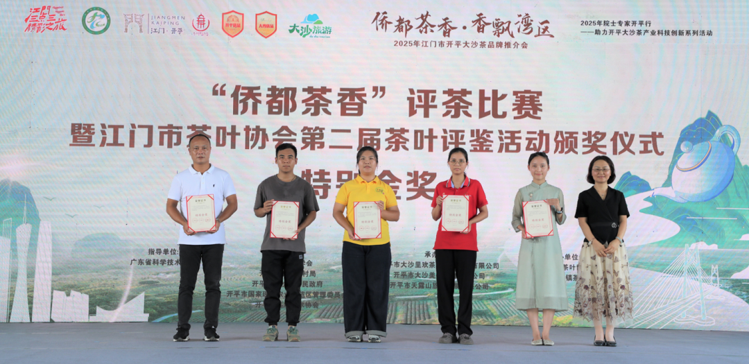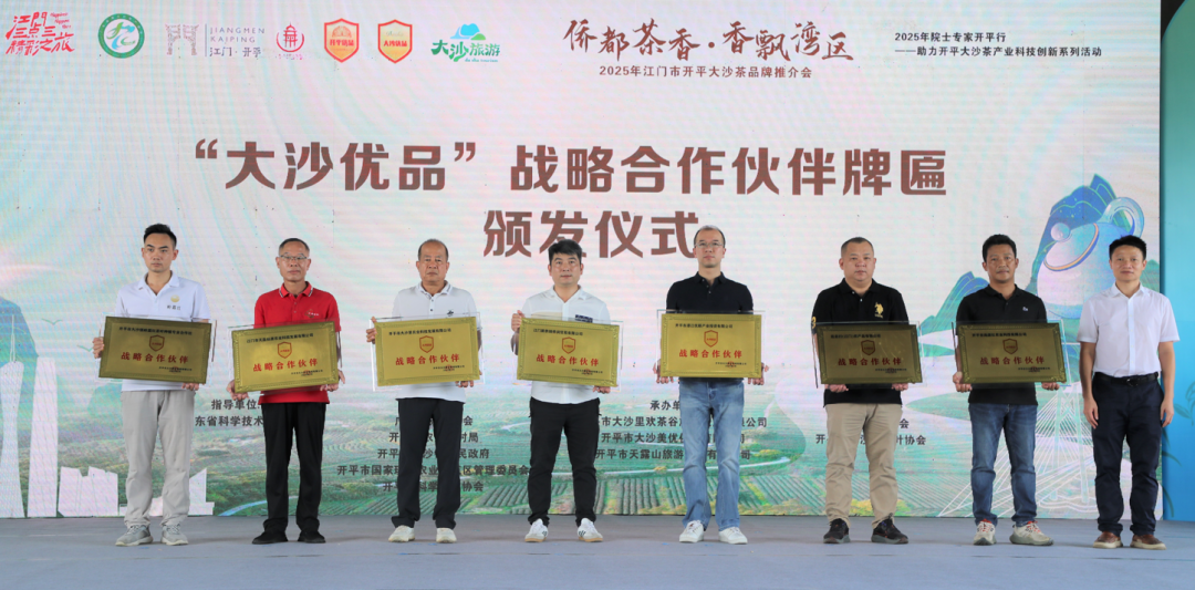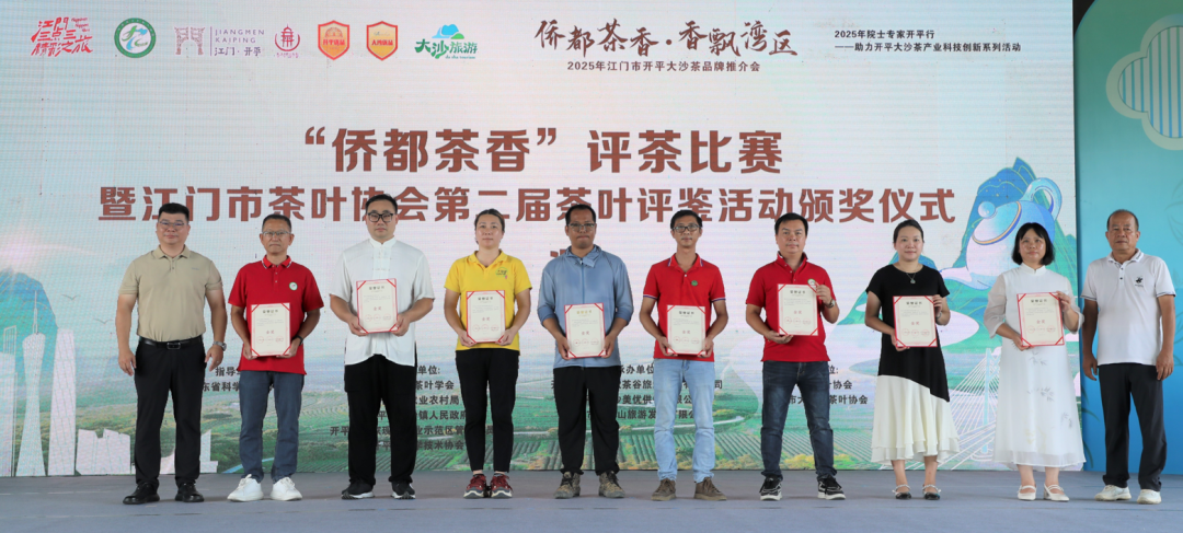 活動中,“僑都茶香”評茶比賽暨江門市茶葉協會第二屆茶葉評鑒活動結果揭曉。開平市大沙里農業科技發展有限公司、江門市天露仙源農業科技發展有限公司等12家企業分別獲得紅茶類、綠茶類、白茶類、創新茶類特別金獎及金獎,展現了大沙茶在市場競爭中的強勁實力。同時,活動為7家表現卓越的“大沙優品戰略合作伙伴”授予牌匾,表彰他們在推動產品品質提升、品牌打造和市場拓展等方面的貢獻。“今年我們與科技特派員簽約,引進優質茶樹品種,加強加工技術,堅持品質至上,借助‘大沙優品’品牌,推動大沙茶走出開平、江門,乃至粵港澳大灣區。”開平市大沙美優供銷有限公司總經理黃韜說道。