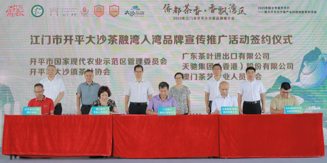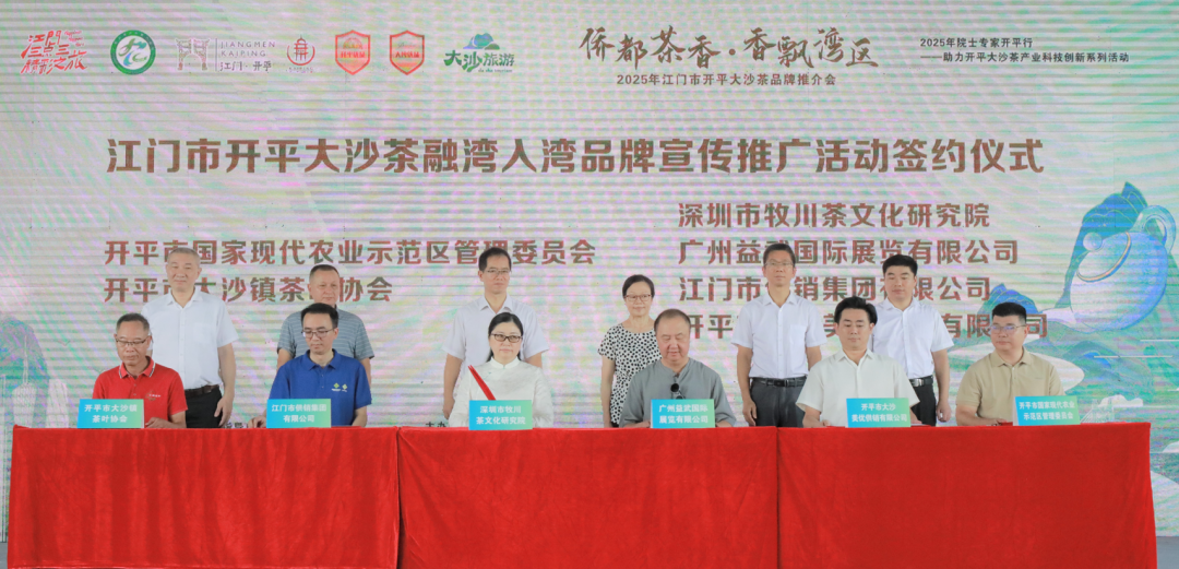 在江門市開平大沙茶融灣入灣品牌宣傳推廣活動簽約儀式上,開平市國家現代農業示范區管理委員會、開平市大沙鎮茶葉協會與廣東茶葉進出口有限公司、天馳集團(香港)股份有限公司、澳門茶藝專業人員協會、深圳市牧川茶文化研究院、廣州益武國際展覽有限公司、江門市供銷集團有限公司、開平市大沙美優供銷有限公司成功簽約。隨著院士顧問團的加持、科技服務站的落地和灣區市場的全面開拓,開平大沙茶正朝著十億元級產業集群目標加速邁進,開啟從原產地“土特產”變身大灣區“金名片”的全新征程。深圳牧川茶文化研究院院長陳鋅建議,“開平市要在新媒體領域開先河,讓每個人成為茶產業代言人;借助僑鄉的特點,挖掘茶與歷史故事的相關性,將這些元素搬上熒幕、搬上舞臺,讓更多人了解開平茶文化;借助粵港澳大灣區后花園優勢,連接深圳、香港、澳門、廣州、東莞等城市,凸顯大沙茶的環境和故事優勢,打響‘大沙茶’品牌。還可以結合非遺、鄉村振興等元素大力推廣,提升品牌影響力。”
