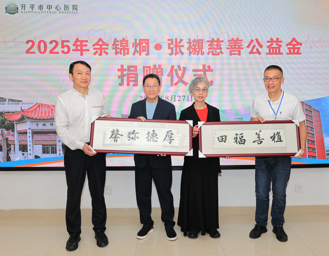 8月27日上午,余卓兒、林翠薇伉儷一行到開平市中心醫院開展愛心捐贈儀式暨交流座談會,以拳拳赤子心、殷殷桑梓情,為開平醫療衛生事業高質量發展添磚加瓦。開平市領導伍德斌、梁俏筠出席活動。