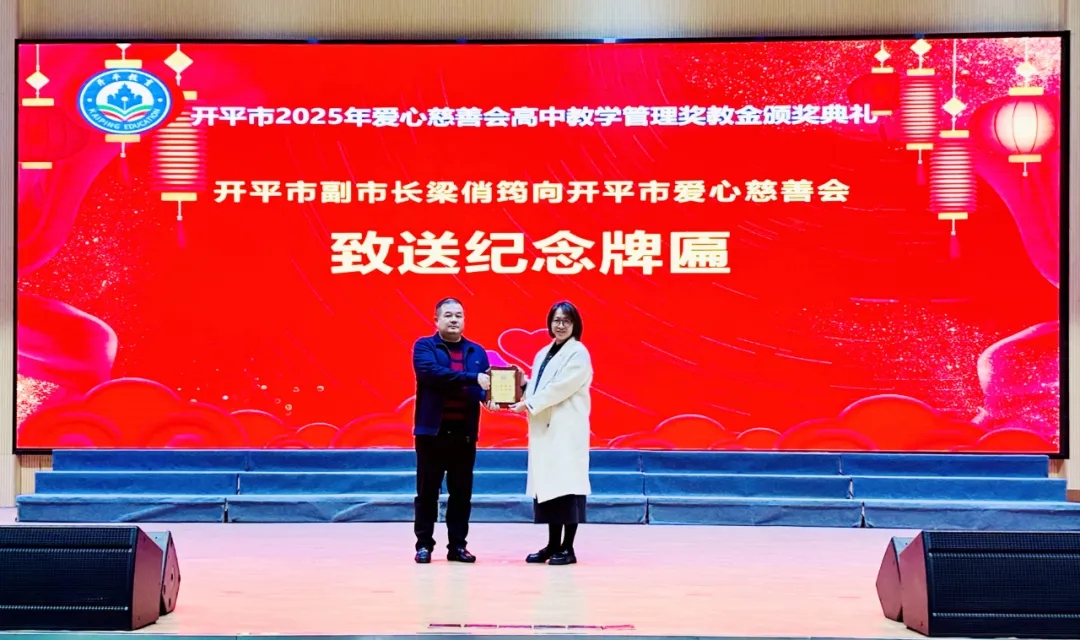 11月19日下午,開平市2025年愛心慈善會高中教學管理獎教金頒獎典禮在開僑中學舉行,表揚先進、樹立榜樣,弘揚教育家精神,營造尊師重教的良好社會氛圍。市領導梁俏筠參加活動。