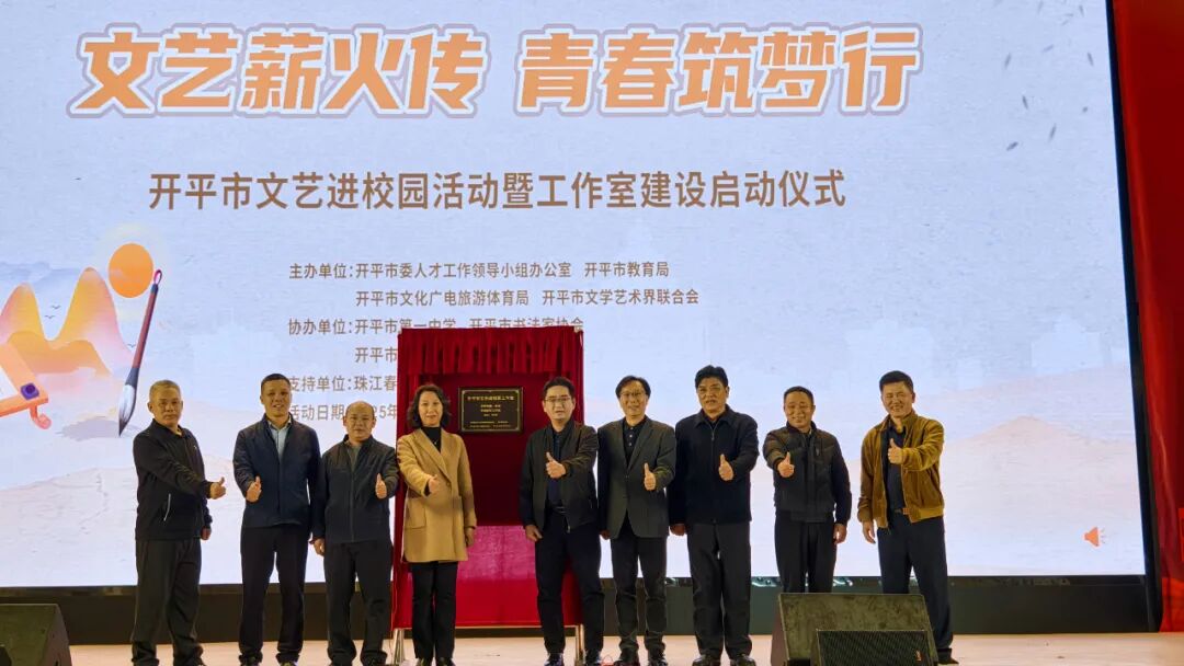 11月20-21日,開平市“文藝薪火傳 青春筑夢行”文藝進校園活動暨工作室建設啟動儀式分別在開平市第一中學和開平市開僑中學舉行,活動以推動優秀傳統文化滋養校園為核心,秉持“以美育人、以文化人”理念,助力學生在藝術熏陶中成長。開平市領導周寶珠出席活動。