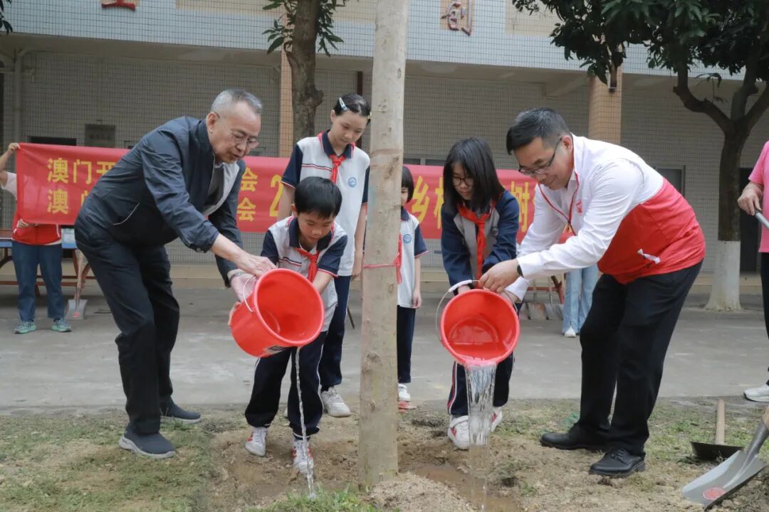 此次活動由開平市委統戰部組織,澳門開平同鄉聯誼會、澳門開平青年會、香港開平同鄉會共同參與,在校園內種下鳳凰木苗,既寄托著植樹添綠的美好寓意,也傳遞著對下一代如木向榮的深情祝愿。