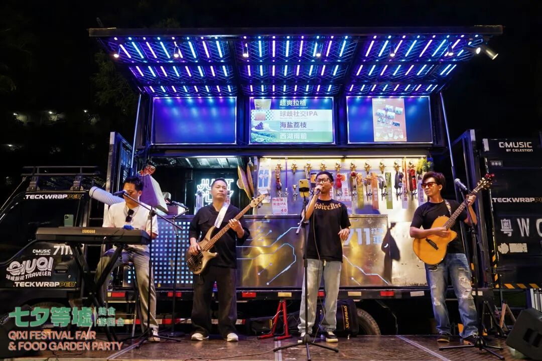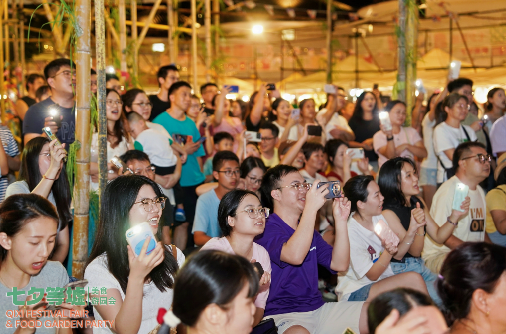 本次活動徹底打破了傳統(tǒng)節(jié)慶活動的舉辦模式。承辦方IE公社作為一個匯聚本土及外來創(chuàng)客青年的平臺,在此次“七夕等墟”活動中,從策劃、設(shè)計到攤位招募、現(xiàn)場執(zhí)行,均由青年團隊一手包辦。活動現(xiàn)場,阿曳、哈吉他(haha)等音樂人,以及LazyLady雷技雷帝樂隊、噪樂時空樂團等特色樂隊輪番獻(xiàn)藝,通過民謠、電子、搖滾等多種音樂形式與觀眾熱烈互動。歌聲與光影完美交融,音符點亮夏日夜晚,構(gòu)筑起一座連接古今、溝通你我的音樂"鵲橋",贏得現(xiàn)場觀眾的熱烈掌聲。