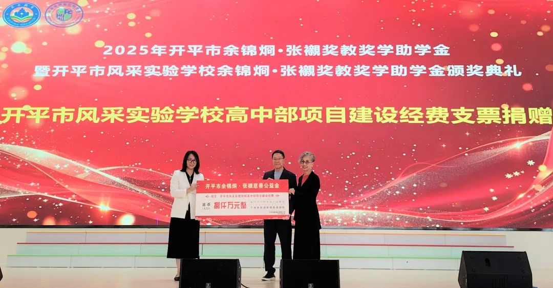 頒獎儀式上,余卓兒先生伉儷捐贈開平市風采實驗學校港幣8000萬元用于學校高中部項目建設、130萬元用于獎教獎學助學,捐贈開平市第一中學港幣10萬元資助清北班研學集訓及培養,捐贈《風采月刊》人民幣6萬元,用于創刊100周年慶典活動。