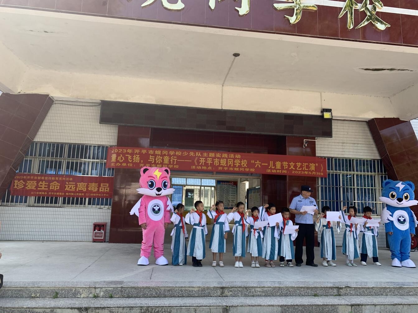 在《中華人民共和國禁毒法》頒布實施15周年紀念日和“六一”兒童節到來之際,為進一步提高青少年禁毒意識,做好青少年毒品預防教育宣傳工作,促進青少年全面發展和健康成長。5月30日上午,蜆岡鎮禁毒工作領導小組辦公室聯合蜆岡學校、派出所、江門昭宇社工中心在蜆岡學校舉辦主題為“珍愛生命,遠離毒品,童心飛揚,與你童行”的文藝匯演活動。