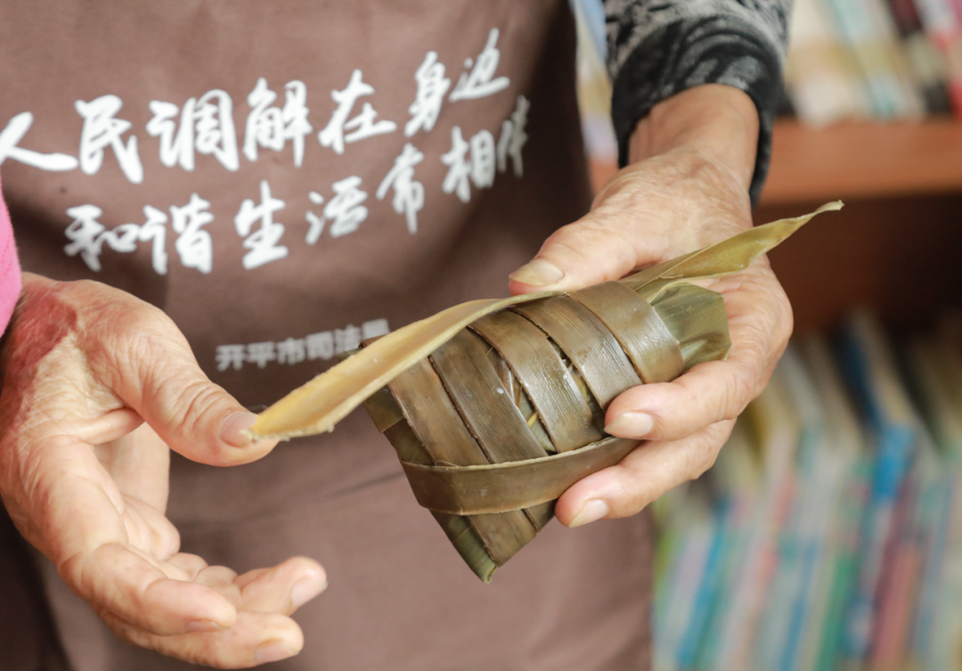 百合鎮儒東村村民謝玉彩:“開平過端午都吃粽子,以前的粽子餡料很簡單,就是糯米加拌有紅藍葉的豬肉,現在生活水平提高了,大家吃的粽子料多又味美。”