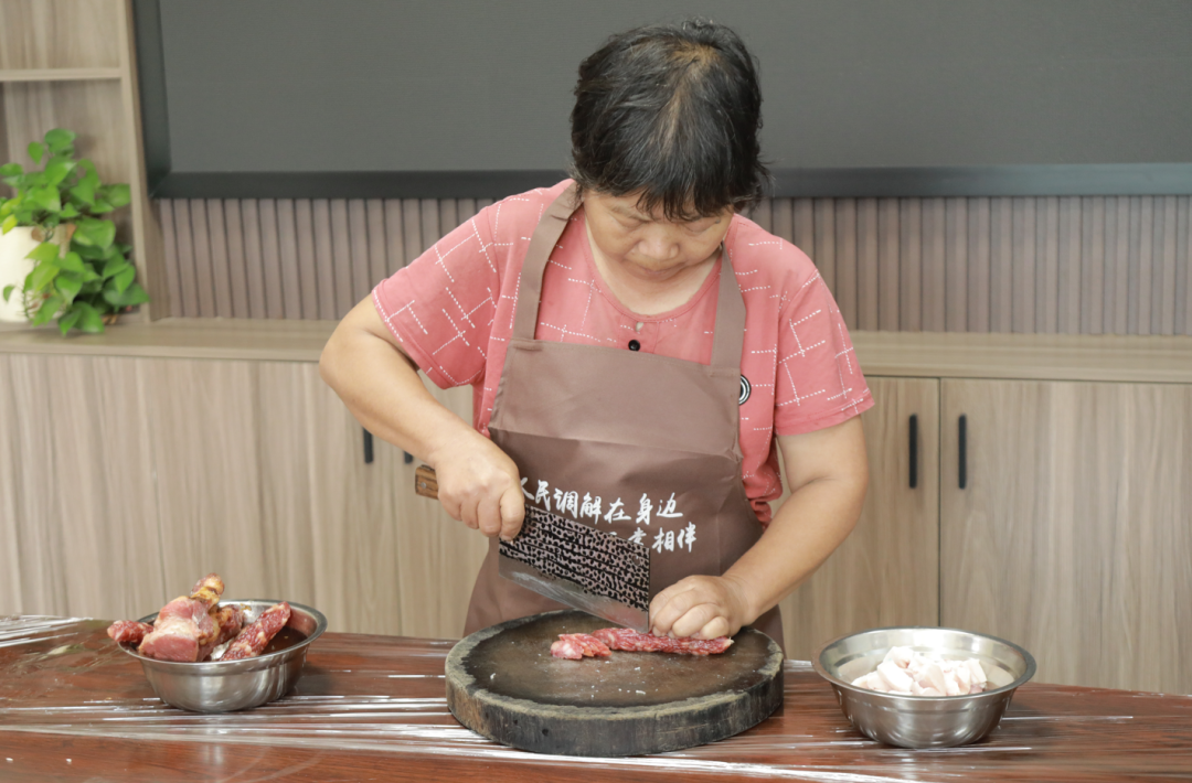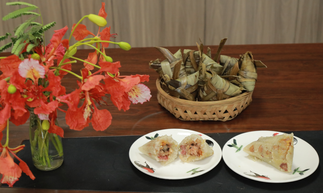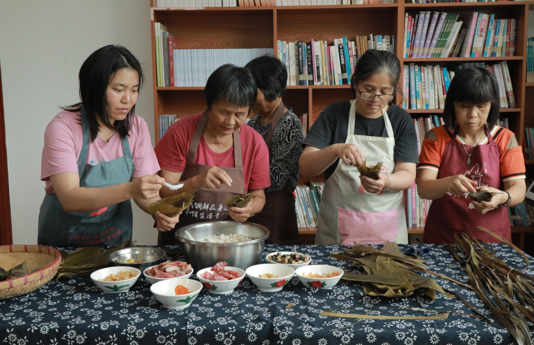 百合鎮儒東村村民:“我們在包粽子應節。我們的粽子餡料很豐富,有栗子、瑤柱、叉燒、豬肉、臘腸、蝦米等。”
