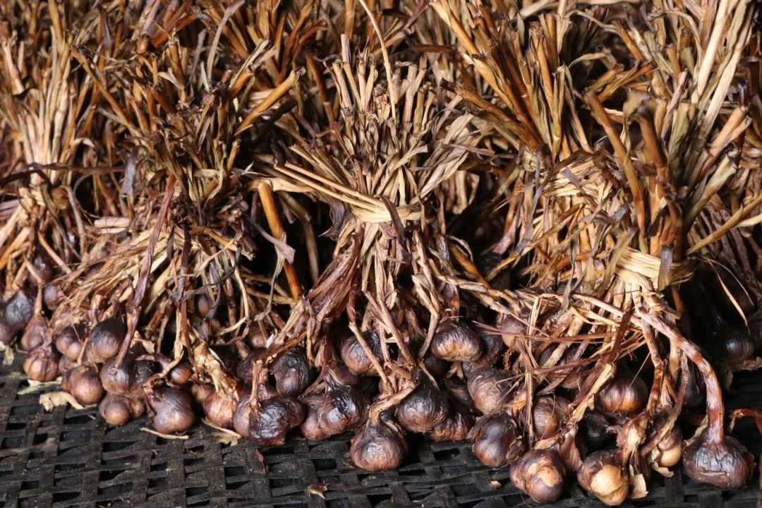 金山火蒜的熏烘工藝極其講究。“熏烘火蒜大概需要15天時間。”張健志介紹道,“熏房分上下兩層,下層點燃禾稈草,上方鋪濕谷殼防止明火。每天熏兩次,每次兩小時,連續熏15天。”