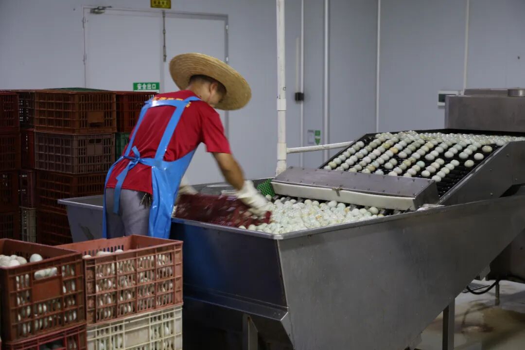 走進位于蒼城鎮的廣東澳德蛋品有限公司,智能化的生產場景撲面而來。一枚枚新鮮雞蛋整齊排列在傳送帶上,沿著流水線開啟“變身”之旅。它們將根據不同終端產品的生產需求,被自動分離加工成蛋黃、蛋清液等高附加值產品,實現雞蛋資源的優化配置與高效利用。