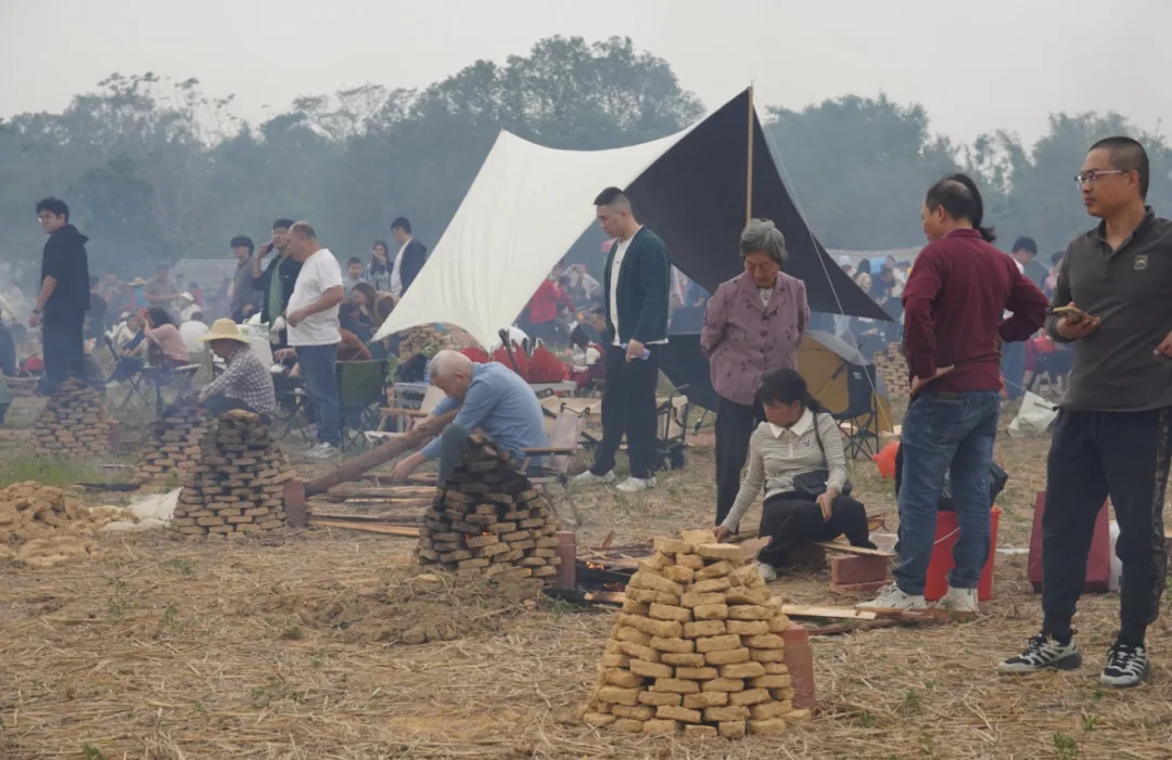 在焗雞體驗區現場,游客們紛紛挽起袖子,親手參與從拾柴生火到美味出爐的全過程。當一只只外皮焦香、內里鮮嫩流汁的“泥焗雞”破土而出時,現場香氣四溢,游客在升騰的煙火氣中沉浸式感受傳統農耕智慧。