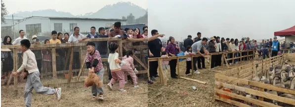 優品展銷會匯聚了全市蛋制品、手工臘味、茶葉等各類優質農產品。美食攤位前人頭攢動,游客們穿梭在各個攤位之間,品嘗著地道的美食,挑選著心儀的農產品,現場氣氛熱烈。徒手捉雞、圈圈套鵝等互動游戲讓城鄉游客在歡聲笑語中拉近距離。