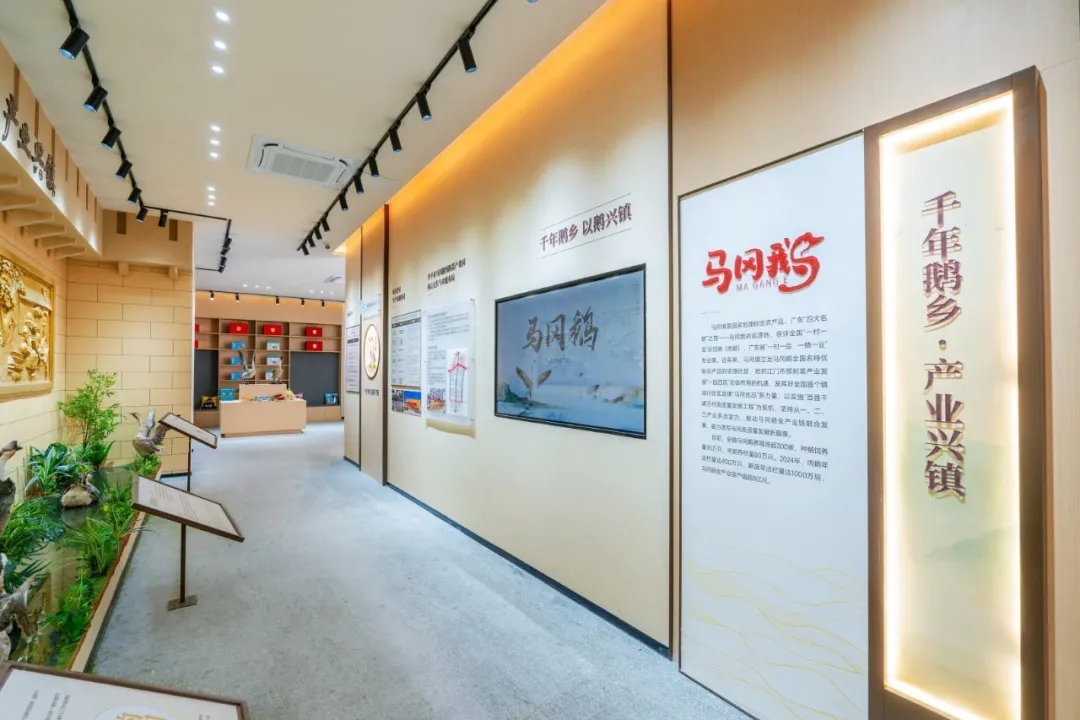 美麗圩鎮客廳內部緊密結合馬岡鎮地方特色,分別以“序廳·印象馬岡”“歷史長廊·圩韻千年”“當代華章·綠美家園”“千年鵝鄉·以鵝興鎮”“未來暢想·智繪藍圖”為主題,分區展示馬岡鎮實施“百千萬工程”,推進鄉村全面振興取得的顯著成效,成為了向人民群眾推介馬岡歷史文化、和美鄉村和特色產業的重要窗口。