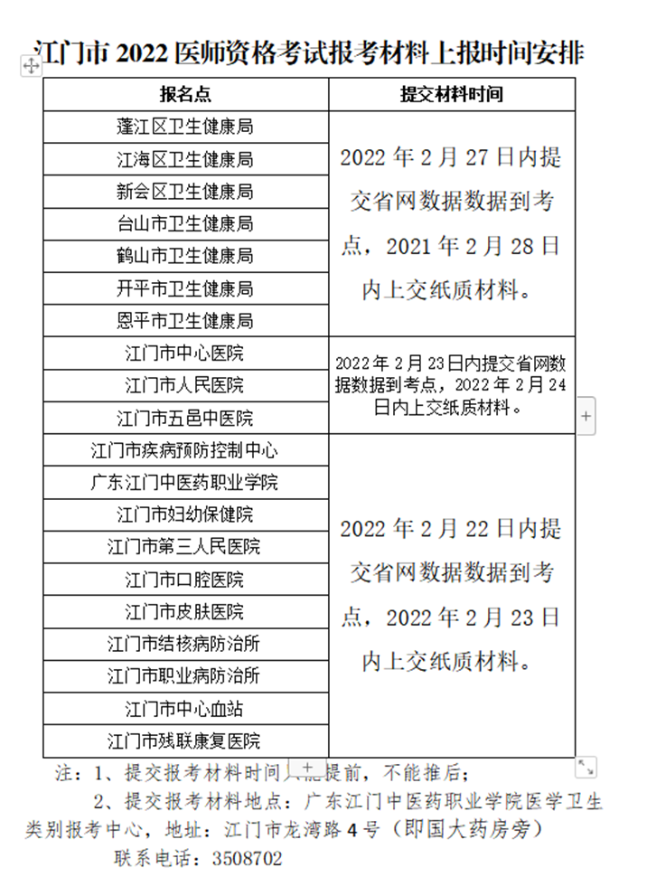 問:江門市2022醫(yī)師資格考試報考材料上報時間安排?