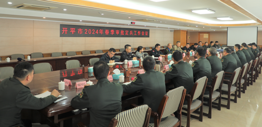 3月12日上午,開平市組織召開2024年春季審批定兵工作會議,審定今年春季應征入伍的新兵名單和兵員去向,部署下一階段征兵工作。江門軍分區動員處上校處長易思保到場監督指導,開平市委常委、市人武部上校部長邊科教,市人武部上校政治委員張華參加會議。