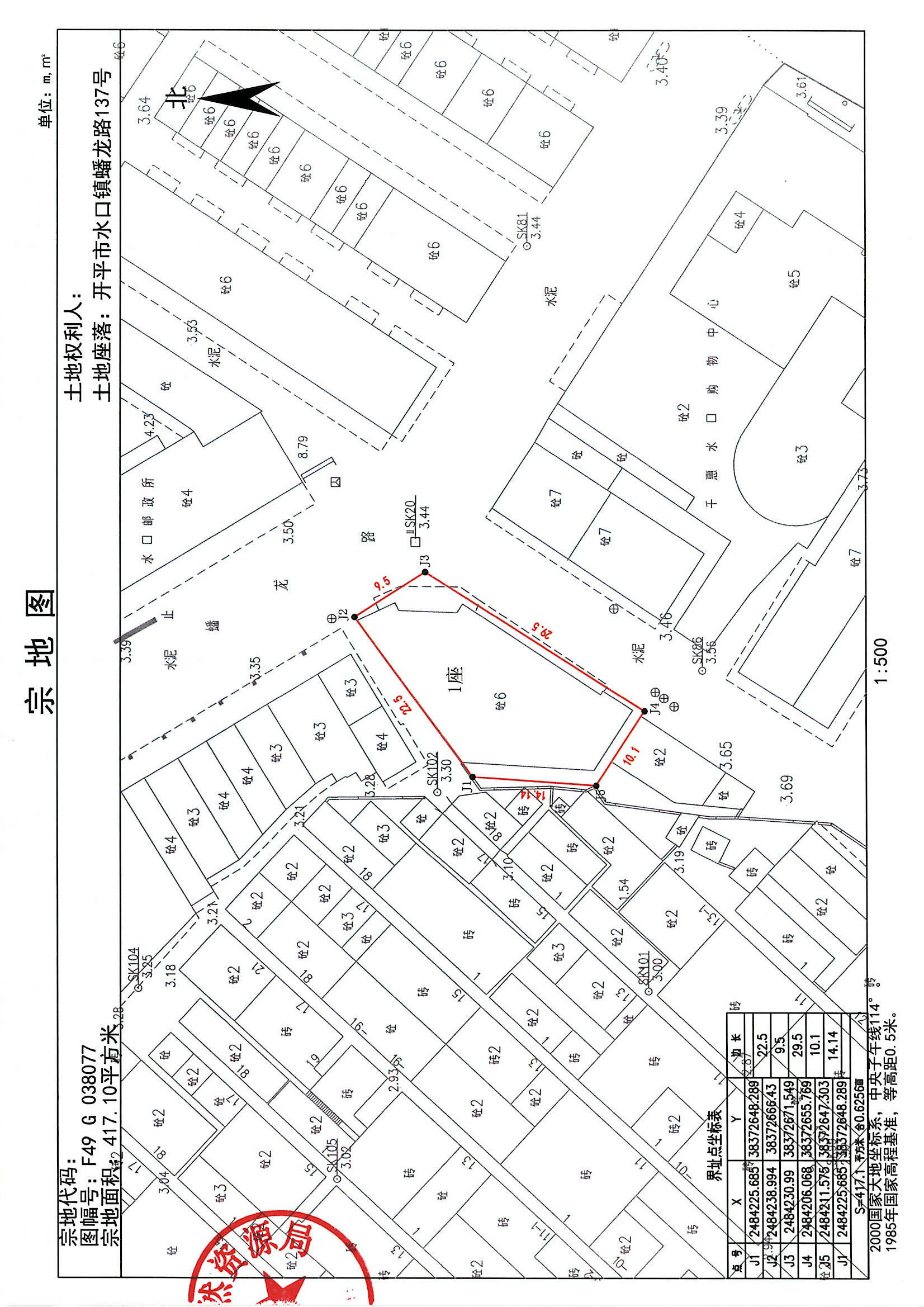 坐落在開平市水口鎮蟠龍路(現編門牌:開平市水口鎮蟠龍路137號)[開府國用(1995)第00974號]的土地使用權,現測土地面積417.10平方米。用地單位開平市水口工商所(開平市市場監督管理局)現申請辦理不動產變更登記。若對該用地界線范圍內的用地或地上建筑物權屬有異議者,自公告之日起15個工作日內向開平市自然資源局水口自然資源所書面提出意見。如無異議,公告期滿即給該單位辦理不動產登記有關手續。用地界線詳見附圖。