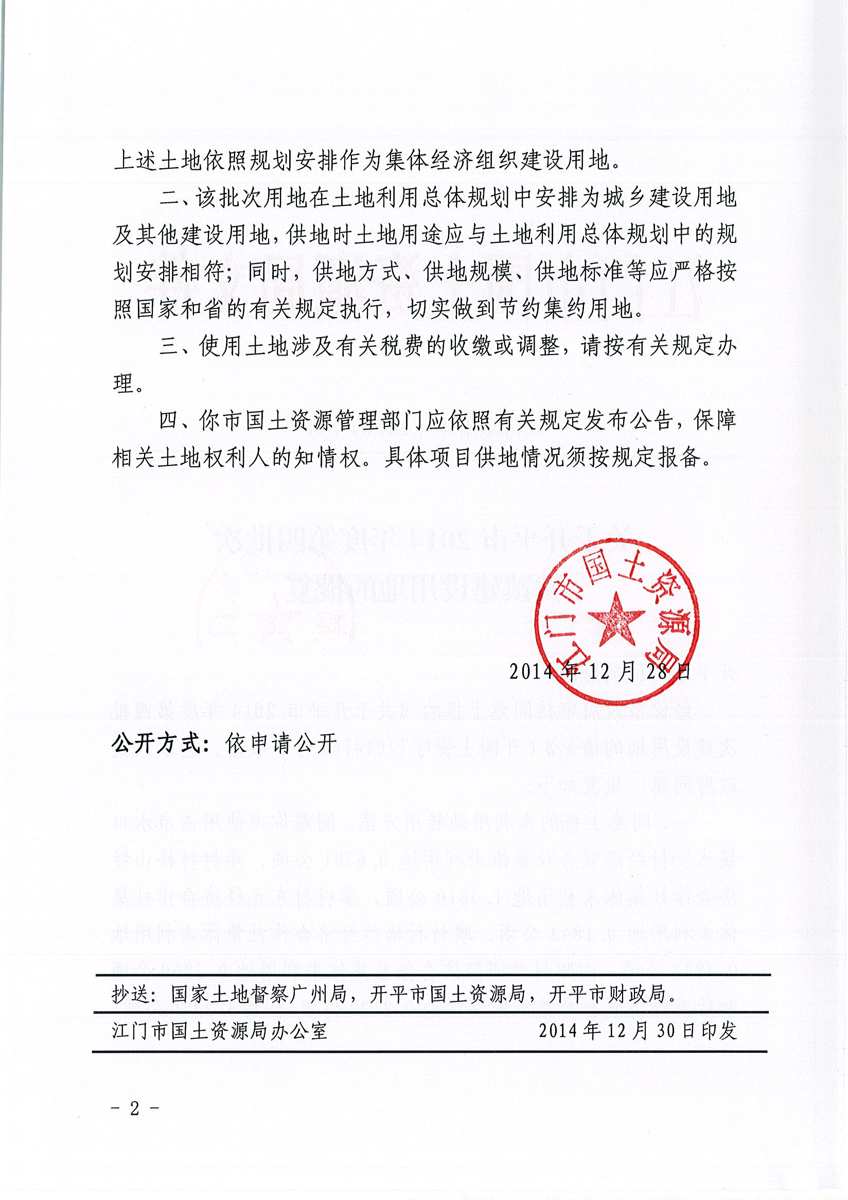 開(kāi)平市2014年度第四批次城鎮(zhèn)建設(shè)用地的批復(fù)