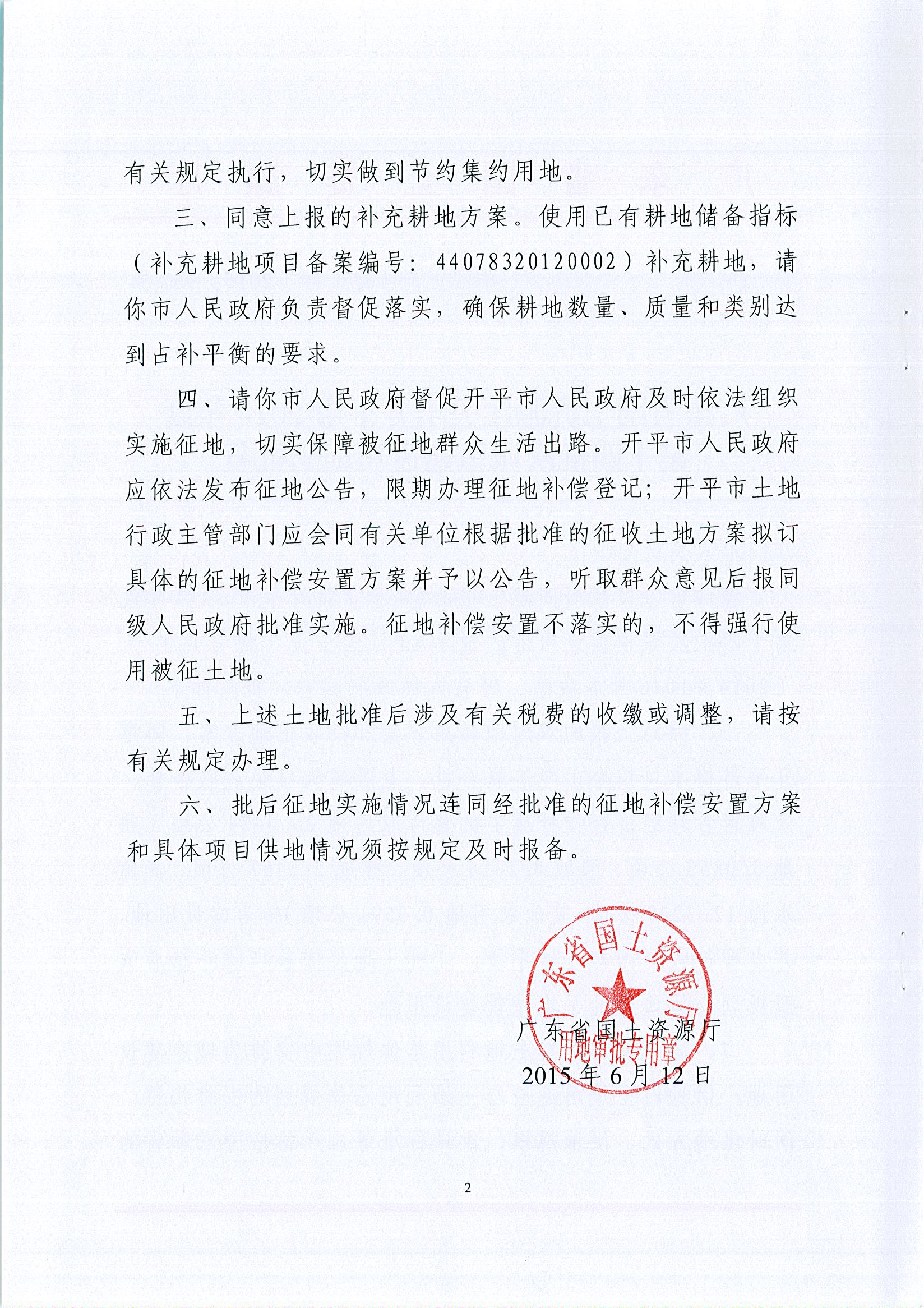 開平市2014年度第十四批次城鎮(zhèn)建設(shè)用地的批復(fù)
