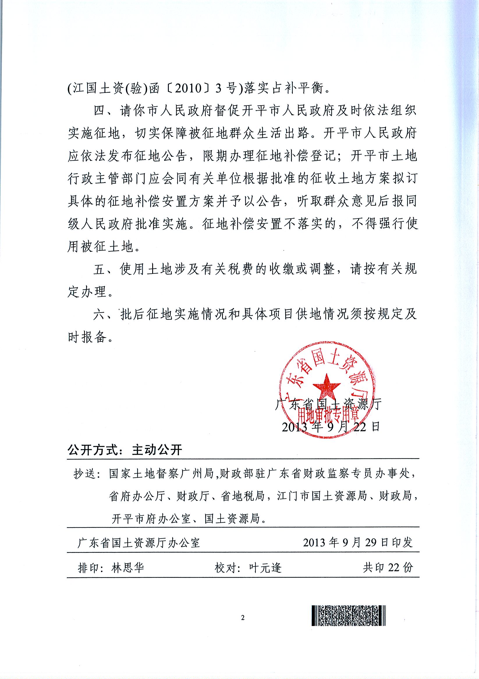 開平市2013年度第二批次城鎮建設用地的批復