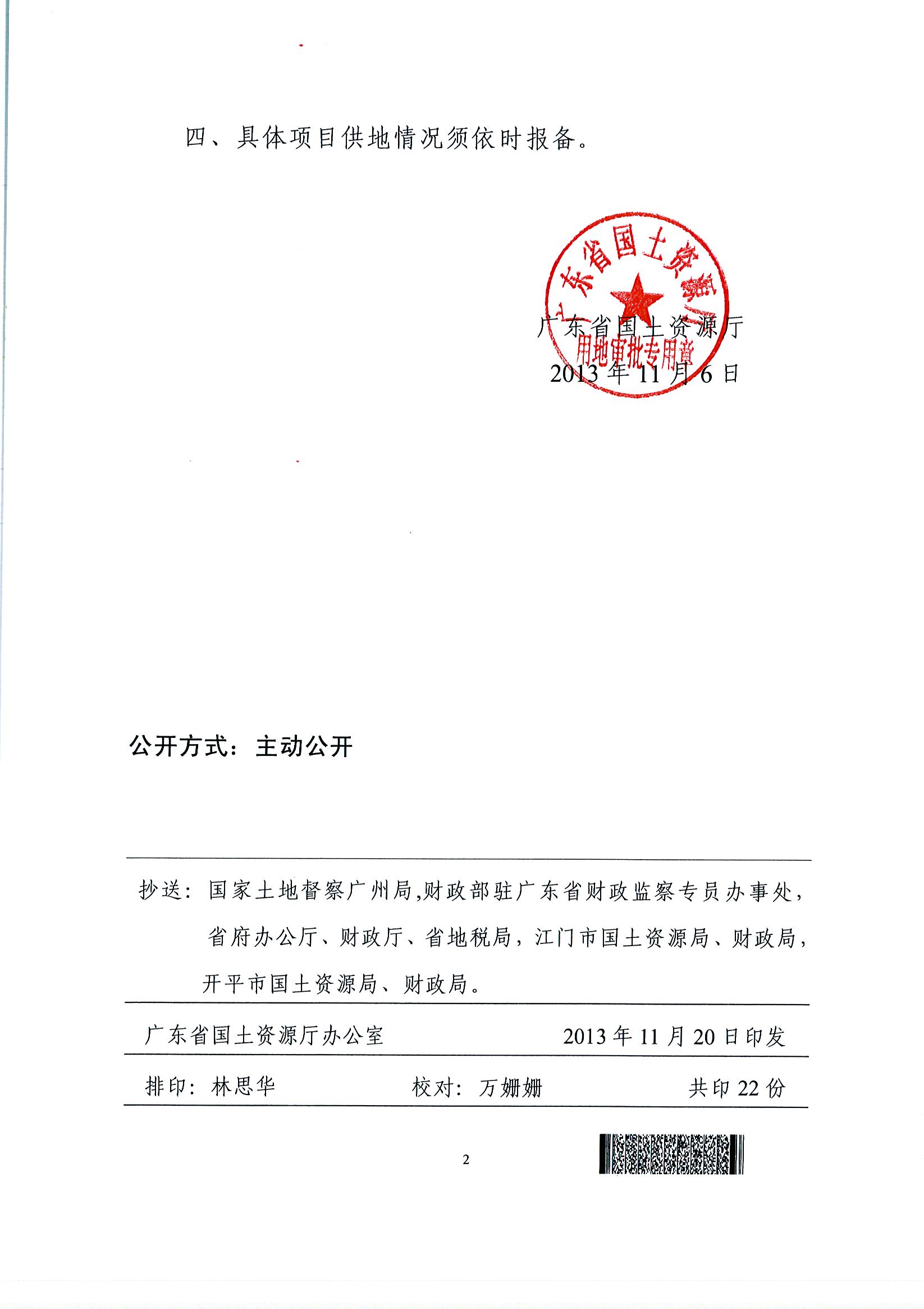 開平市2013年度第四批次城鎮建設用地的批復