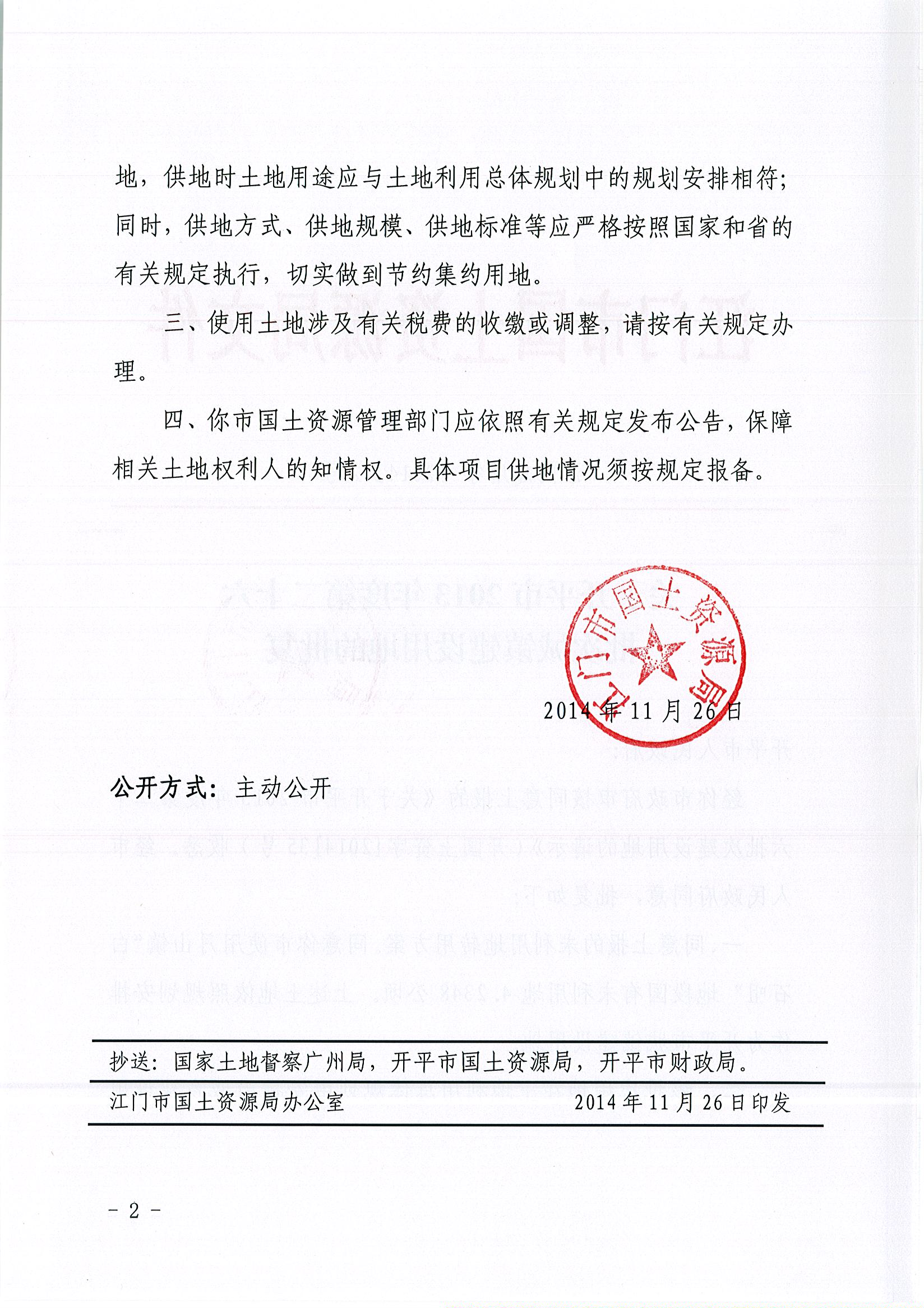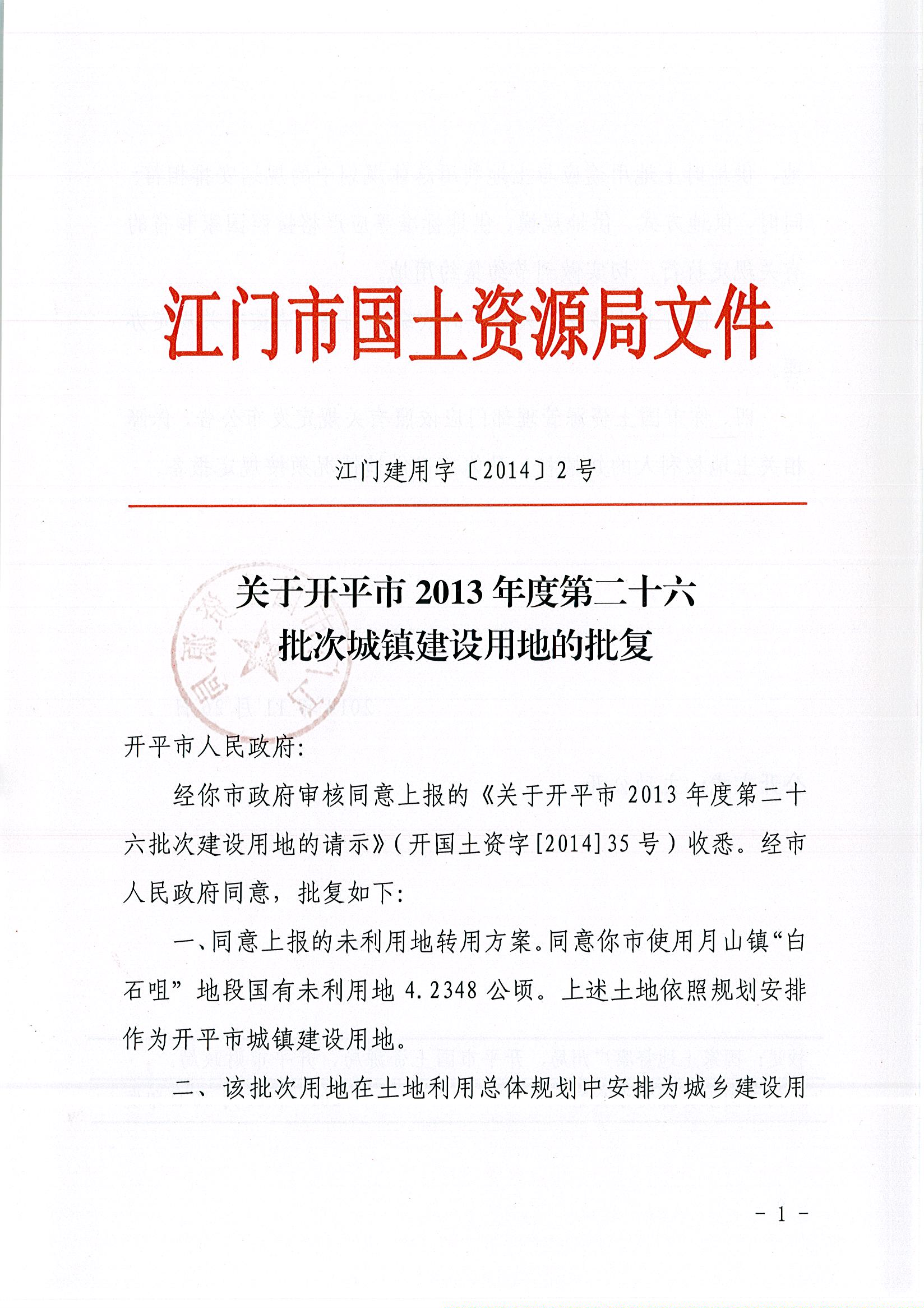 開平市2013年度第二十六批次城鎮建設用地的批復