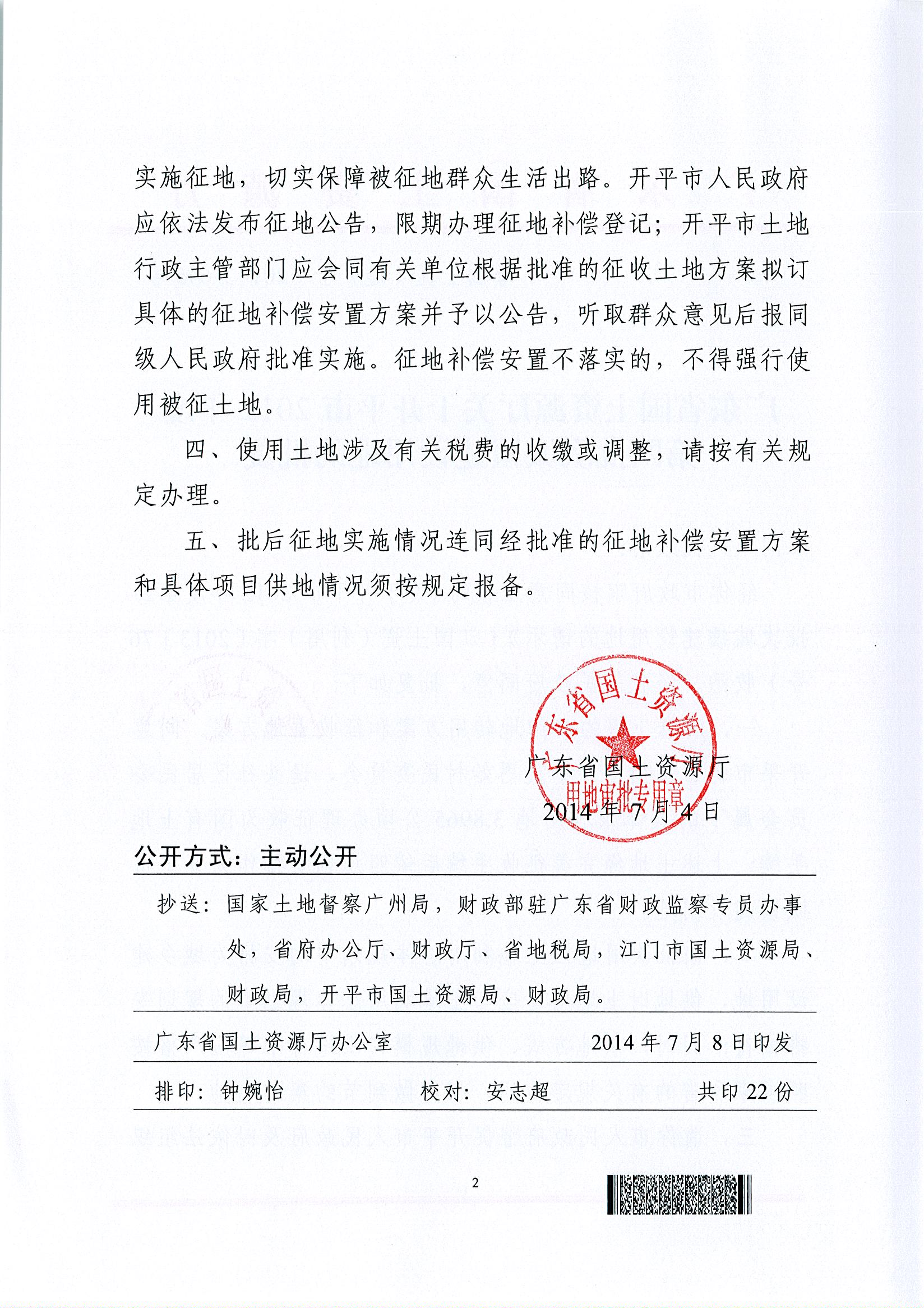 開平市2012年度第四批次城鎮(zhèn)建設(shè)用地的批復(fù)
