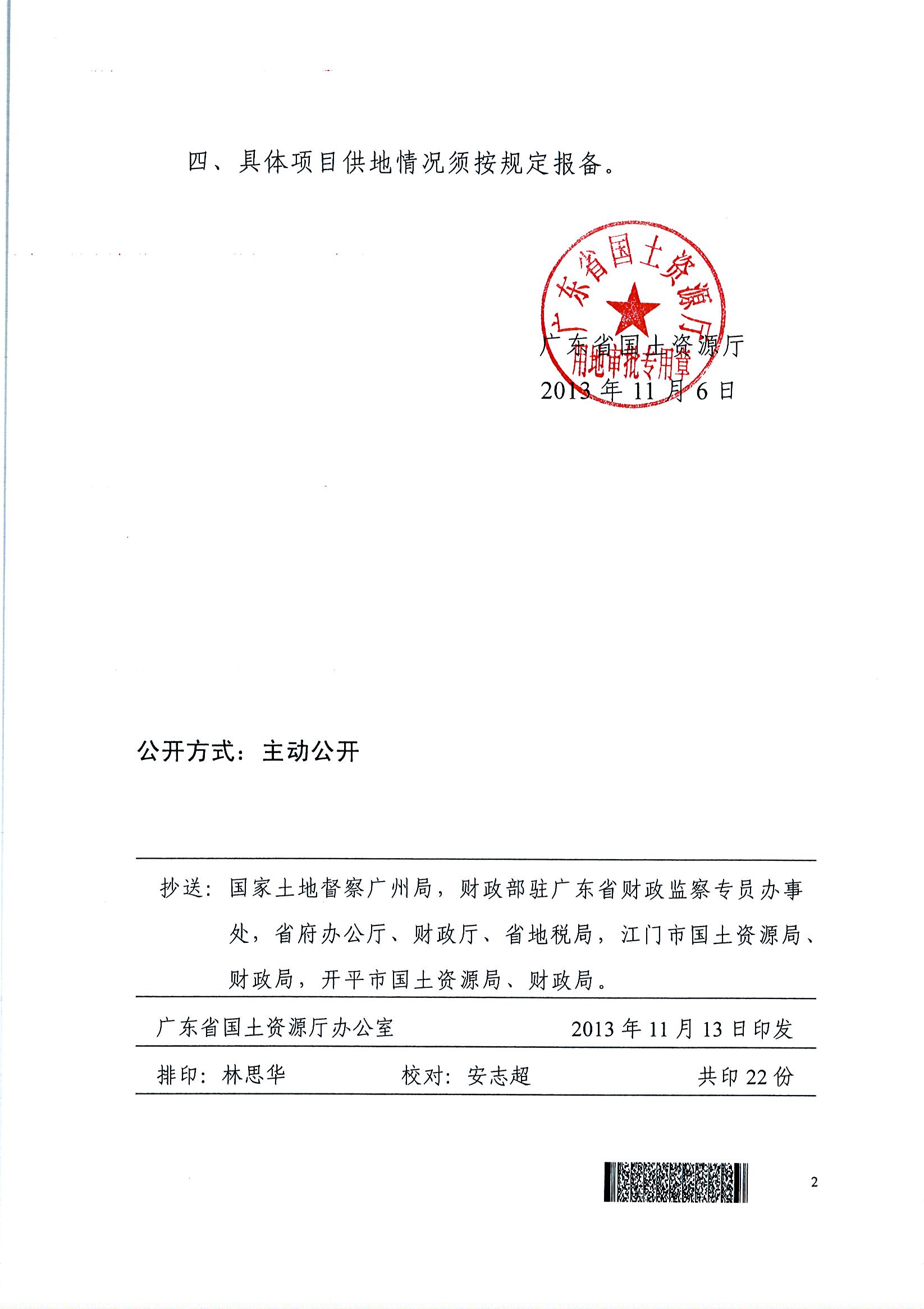開平市2012年度第十六批次城鎮(zhèn)建設(shè)用地的批復(fù)