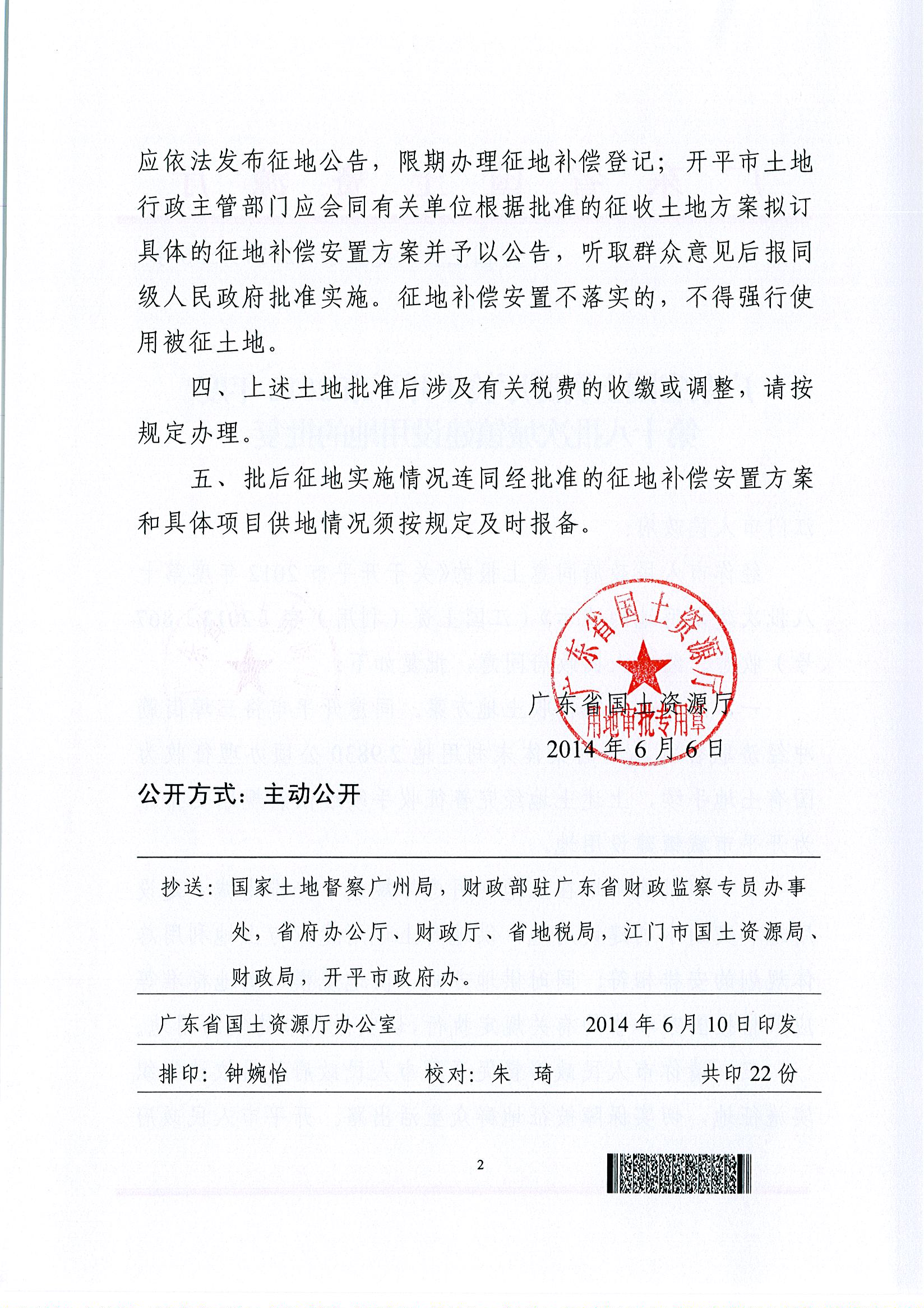 開平市2012年度第十八批次城鎮建設用地的批復