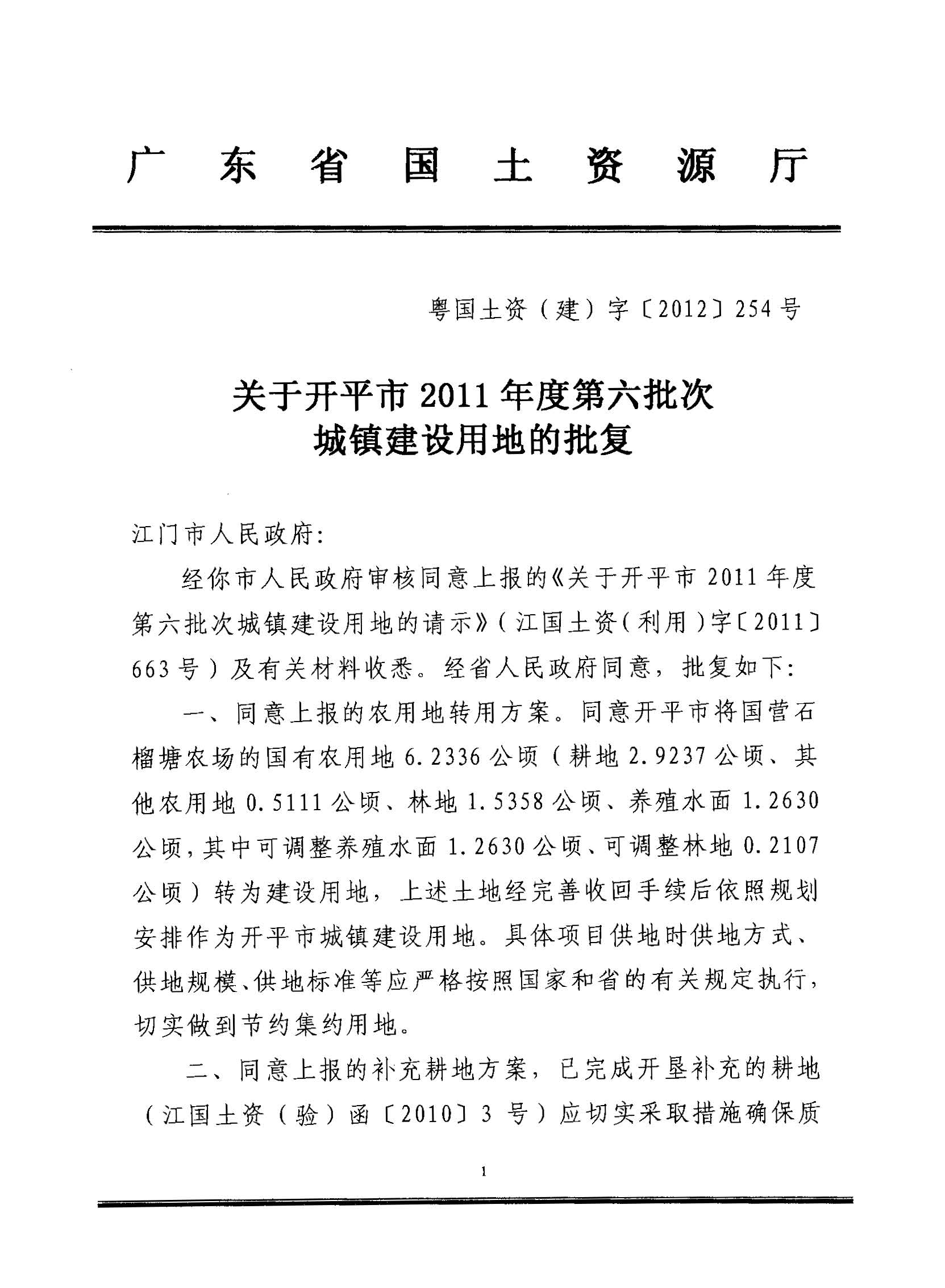 您當前的位置:首頁 > 開平市自然資源局 > 土地管理 > 批復文件
