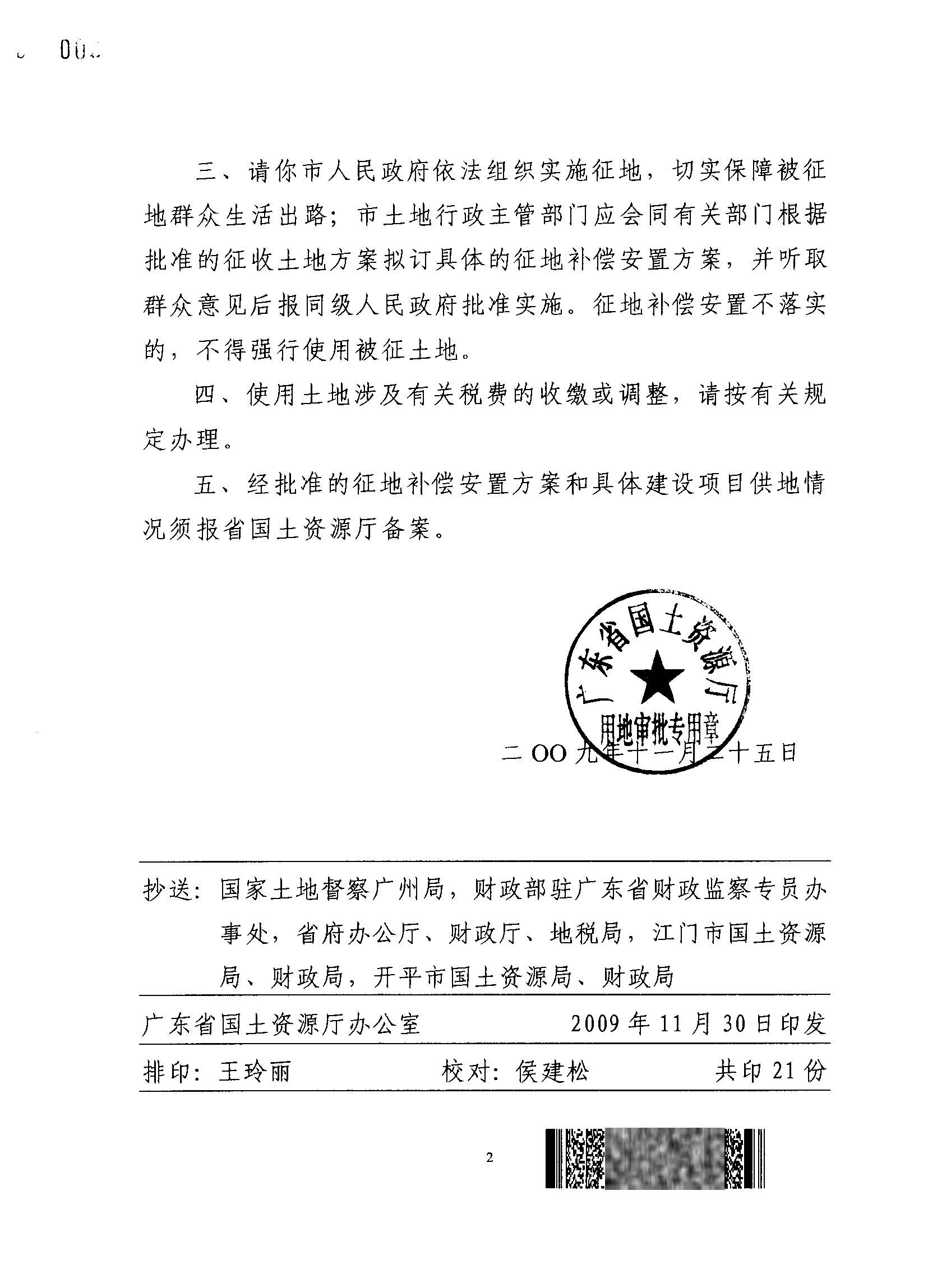 開平市2008年度第六批次城鎮建設用地的批復