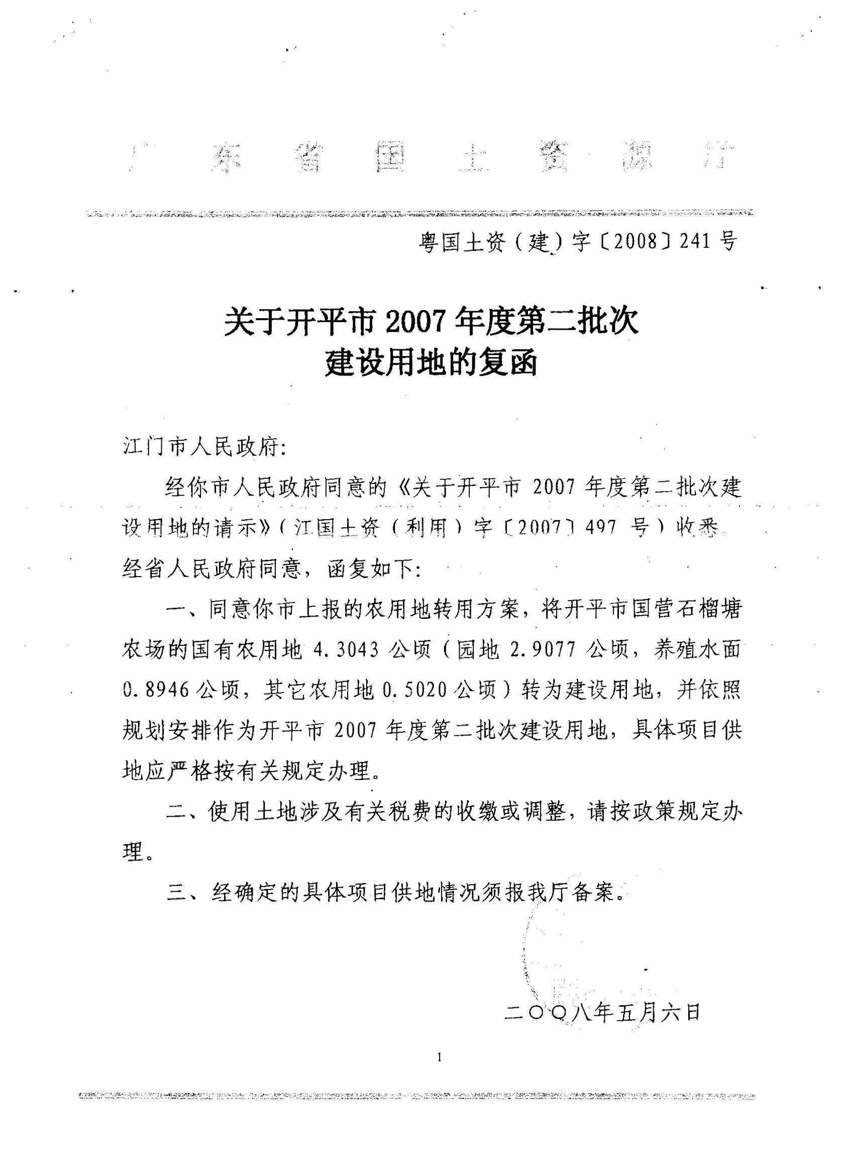 您當前的位置:首頁 > 開平市自然資源局 > 土地管理 > 批復文件