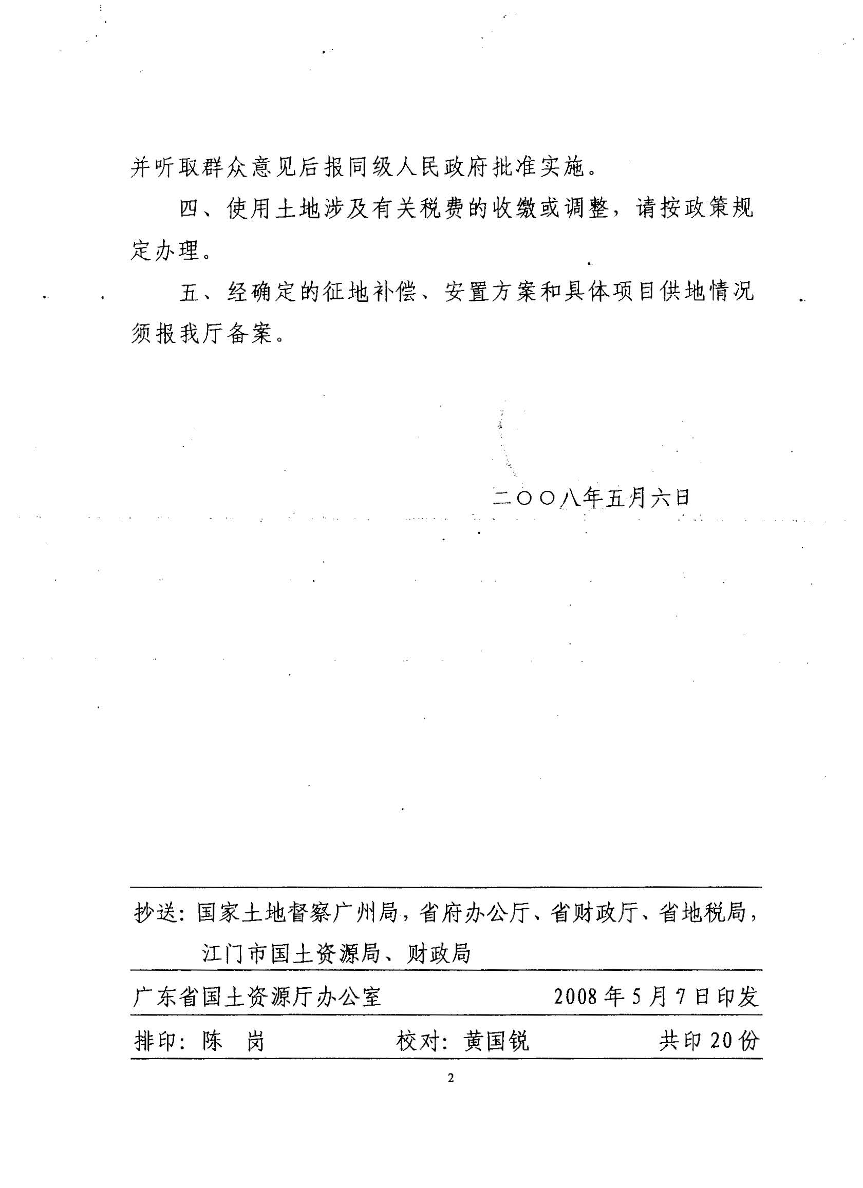 開平市2007年度第十批次建設用地的復函