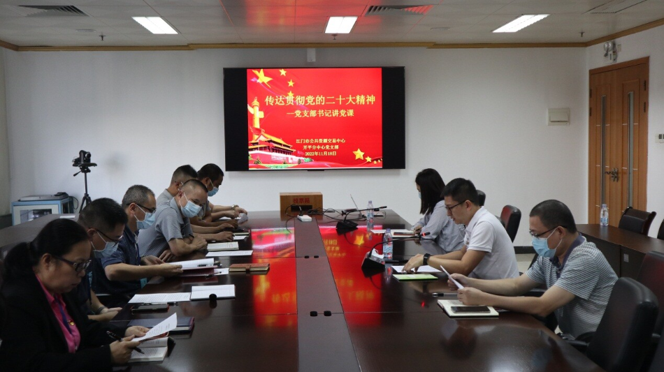 11月18日,江門市公共資源交易中心開平分中心召開黨支部會議,傳達貫徹黨的二十大精神會議,會議由中心黨支部書記進行專題講課,全體黨員參加了學習。 會議提出三點要求。一要提高政治站位,切實把思想和行動統一到黨中央精神上來,把黨的二十大明確的新目標、部署的新任務、提出的新要求落實到公共資源交易各項工作中去。二要加強學習宣傳。學習宣傳貫徹黨的二十大精神,是當前和今后一個時期的首要政治任務。要迅速掀起學習宣傳貫徹黨的二十大精神熱潮,全體黨員干部要采取多形式常態化學習,確保黨的二十大精神入腦入心入行。三要抓好工作落實。要把學習貫徹黨的二十大精神與貫徹落實習近平總書記對廣東系列重要講話和重要指示精神結合起來,在開啟全面建設社會主義現代化國家新征程中作出我們的貢獻。具體聯系到中心工作,一是要提升交易服務水平,為高質量發展提供良好營商環境。二是要堅持全面從嚴治黨,為公共資源交易事業提供堅強政治保證。
