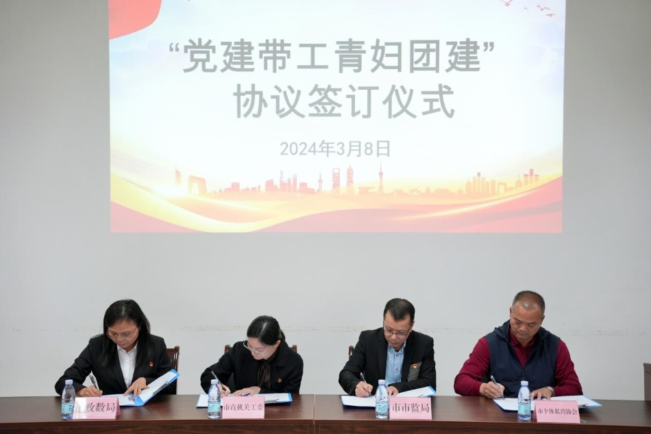 為打好黨建引領“組合拳”,奏響黨群工作“立體聲”,充分發揮政企優勢互補作用,提高基層黨建工作和中心工作成效,3月8日下午,開平市直機關工委、市政數局、市市監局、市個體私營企業協會舉行簽約儀式,共同簽署《黨建帶工青婦團建活動協議書》。 協議簽署后,四家單位將本著以黨建聚合工青婦力量,夯實黨建引領作用的原則,通過團建活動平臺、分享工作資源、交流工作經驗、解決實際問題,在筑牢組織基礎、團結隊伍建設、共辦實事好事、同謀四方發展等方面,著力提升改革攻堅質量,以“黨建引領促服務