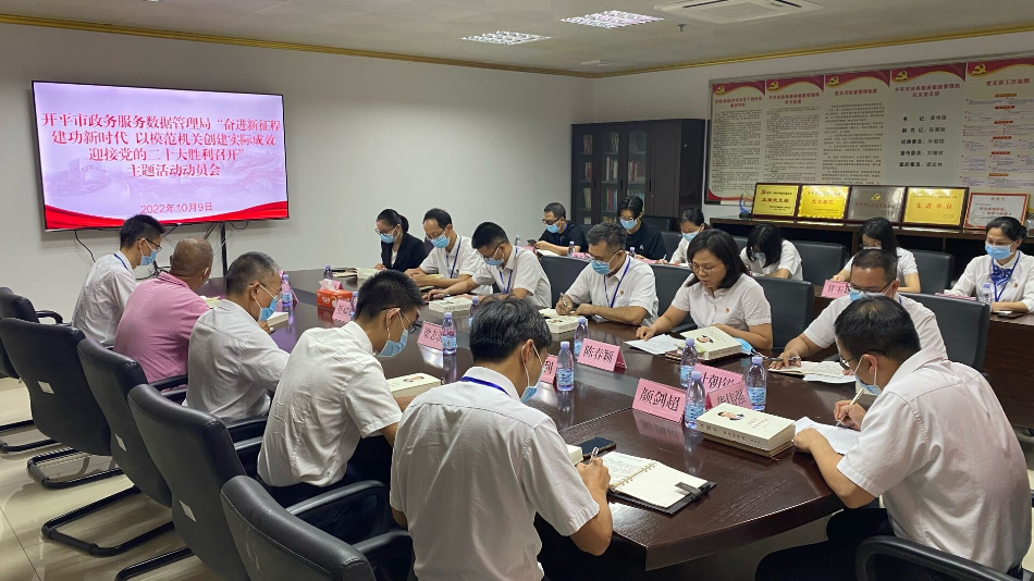 以模范機(jī)關(guān)創(chuàng)建實(shí)際成效迎接黨的二十大勝利召開”主題活動(dòng)動(dòng)員會(huì),深入學(xué)習(xí)貫徹習(xí)近平總書記關(guān)于機(jī)關(guān)黨建的重要論述,落實(shí)省委、江門市委和開平市委工作要求,組織動(dòng)員局全體干部職工以昂揚(yáng)斗志、沖天干勁在各自崗位上擔(dān)當(dāng)作為,以實(shí)際行動(dòng)迎接黨的二十大勝利召開。局機(jī)關(guān)全體人員以及局機(jī)關(guān)黨支部全體黨員參加會(huì)議。 會(huì)議對(duì)《開平市政務(wù)服務(wù)數(shù)據(jù)管理局“奮進(jìn)新征程
