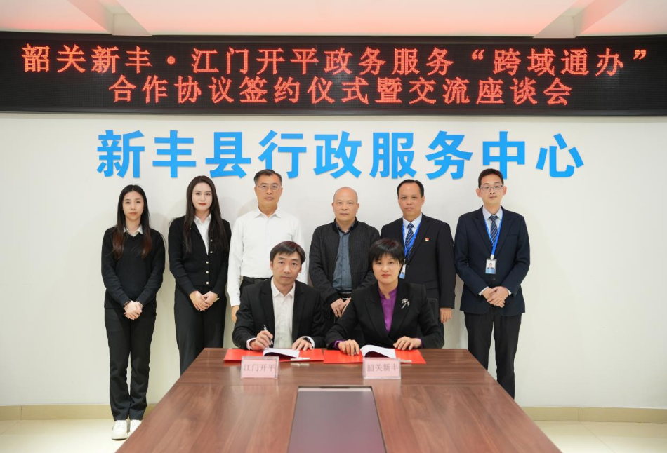 為積極拓展跨區域政務服務合作范疇,切實提升企業與群眾辦事便利度,開平市行政服務中心在今年與中山市翠亨新區建立“跨域通辦”政務合作關系的基礎上,將合作范圍拓展至粵北地區,與韶關市新豐縣行政服務中心達成合作意向。11月28日,開平市行政服務中心與新豐縣行政服務中心正式簽署政務服務“跨域通辦”合作協議,開啟兩地政務服務深度協作新篇章。 此次合作以深化“放管服”改革、優化營商環境為核心目標,積極推進“標準規范、相互授權、異地收件、遠程辦理、協同聯動”的“跨域通辦”新模式,實現兩地企業和群眾“就近辦、一次辦”,為兩地企業和群眾打造更為便捷高效的政務服務環境。 一、構建協同工作機制,保障事項通辦無阻 雙方以“成熟一批,推行一批”為導向構建