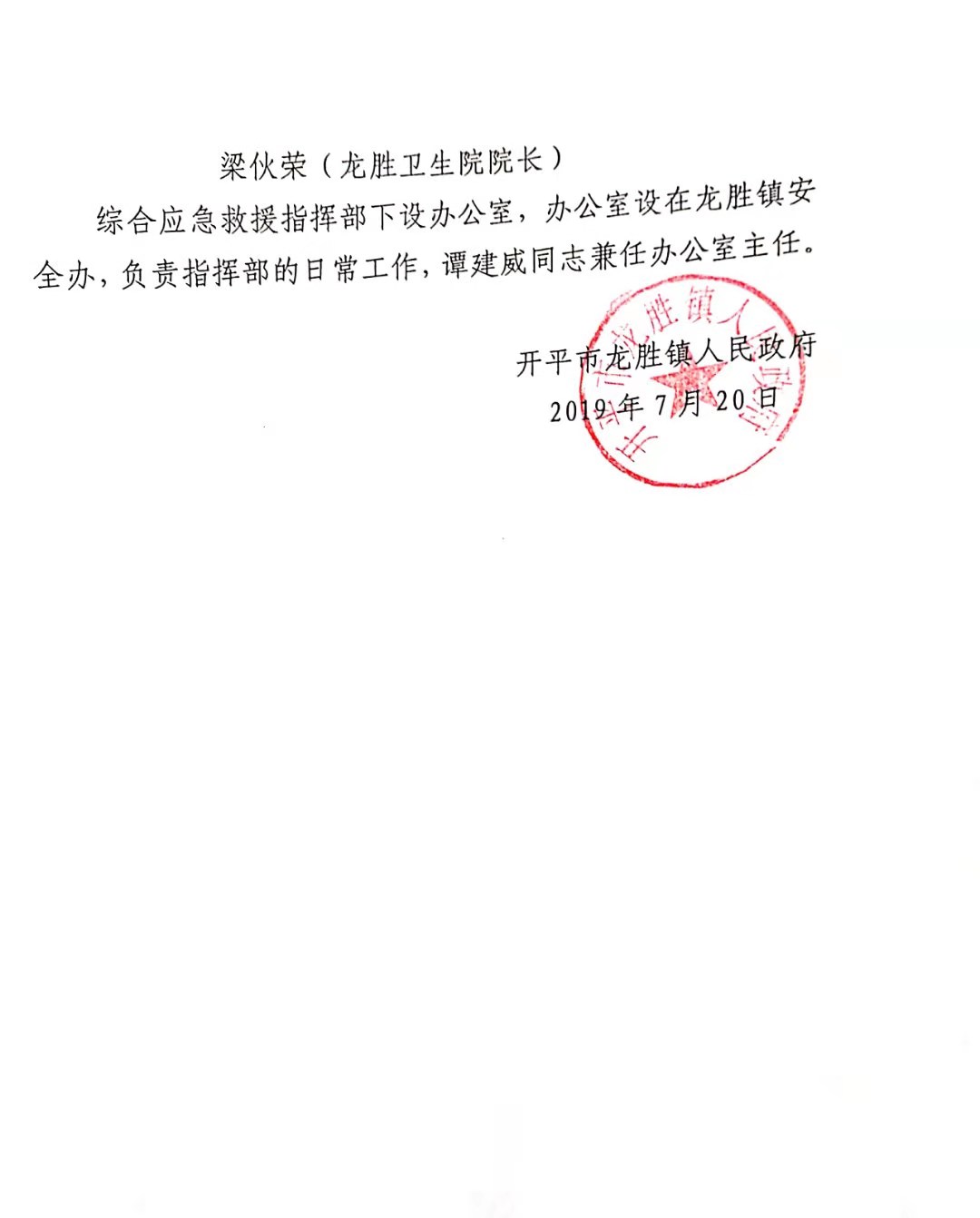 關于成立龍勝鎮綜合性應急救援指揮部的通知