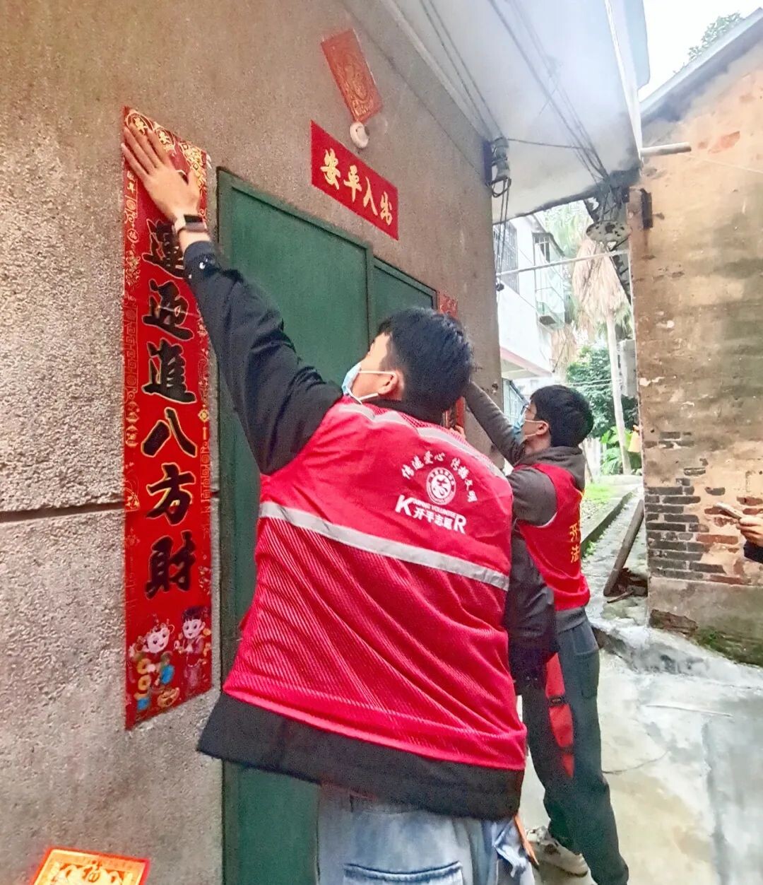 為慰問對象貼對聯,在寒冷冬日送上“團團”溫暖的祝福