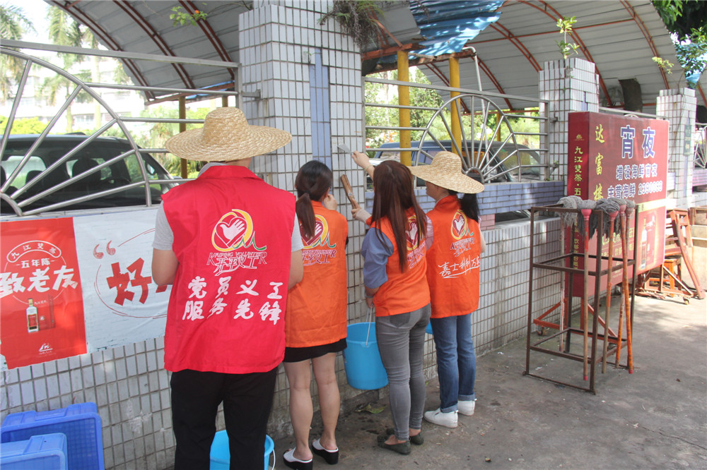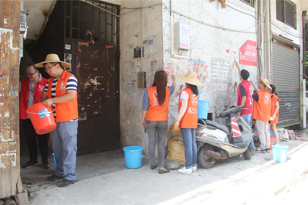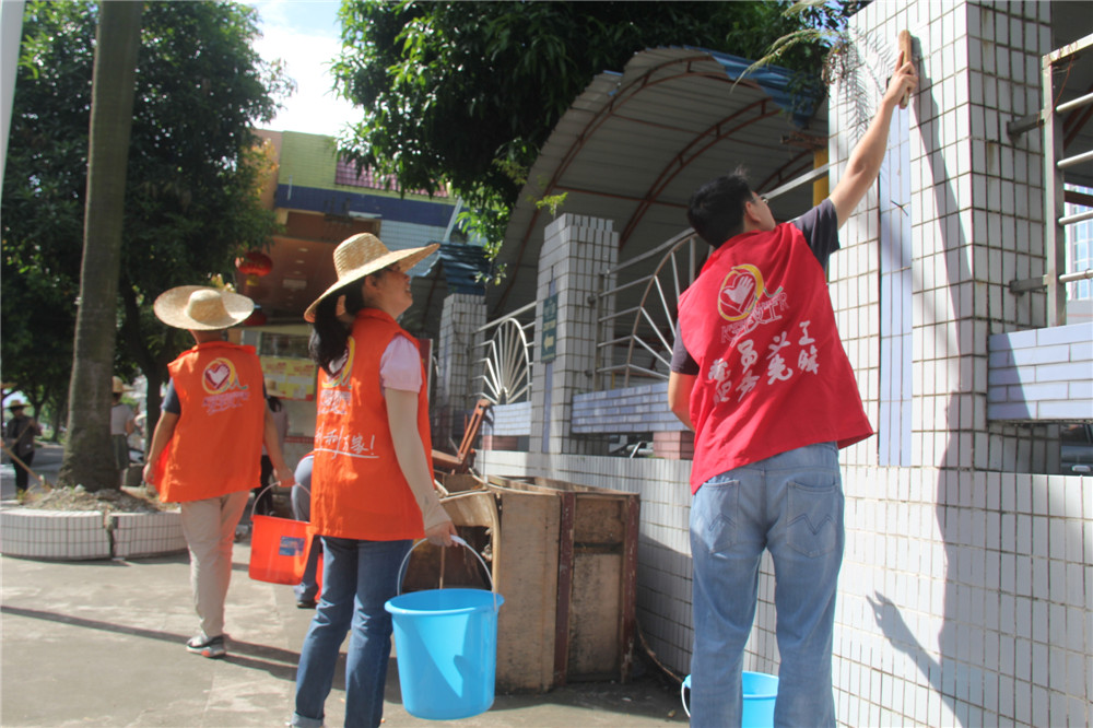 活動中,大家分成幾個小組分別對街道、住宅民居外墻進行衛(wèi)生大清掃及清理“牛皮癬”廣告。氣溫雖高,但街道各黨員志愿者們的熱情更高。有的人揮動著掃帚,打掃街道路面樹枝、清理道路垃圾;有的人深入住宅民居,拿著水桶和鐵鏟,對著各種城市“牛皮癬”進行細致清理。經(jīng)過一個多小時的辛勤勞動,思堤路的路面干凈整潔,住宅民居的樓面煥然一新,取得了良好的整治效果。