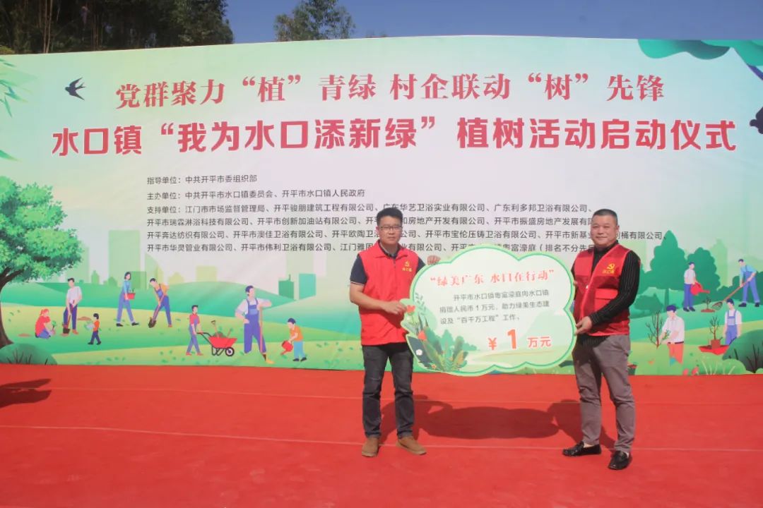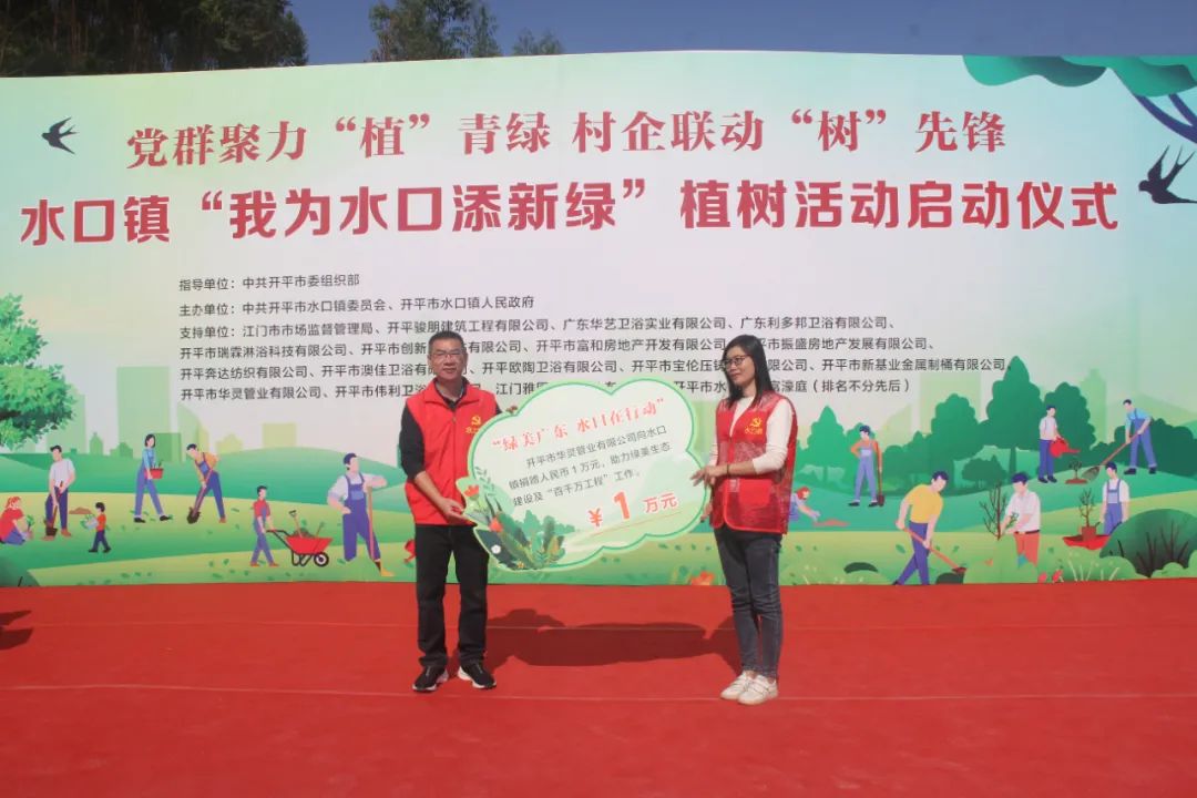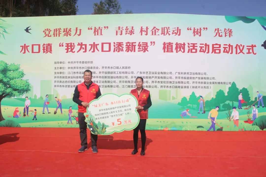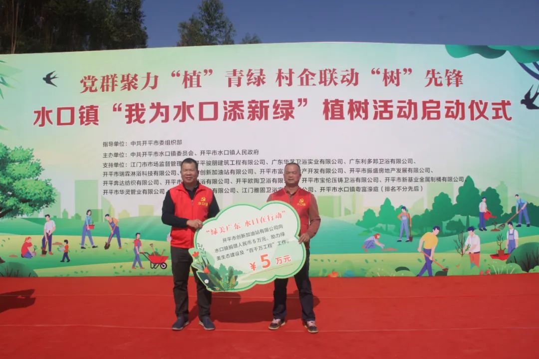 儀式上,結(jié)對(duì)幫扶單位江門市市場(chǎng)監(jiān)督管理局和16家愛(ài)心企業(yè)向水口鎮(zhèn)人民政府捐贈(zèng)人民幣共計(jì)75.097萬(wàn)元,定向用于水口鎮(zhèn)鄉(xiāng)村綠化項(xiàng)目。