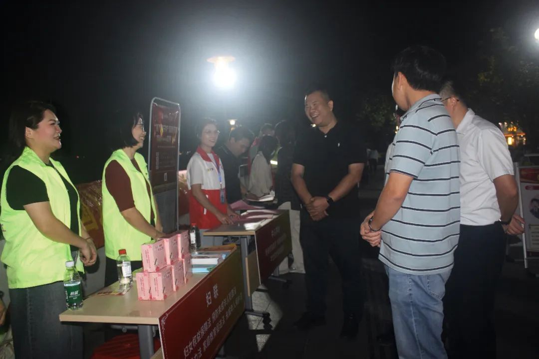 水口鎮黨委書記司徒錦泉,鎮黨委副書記、鎮長胡萬程帶隊來到婦聯攤位前檢查宣傳工作