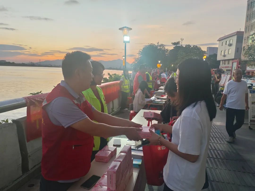 水口鎮人大副主席馮惠清帶領婦聯工作人員熱情地向過往群眾發放宣傳資料