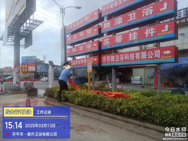 (二)持續推進,強力治“亂”。沿街門店亂堆亂放、亂懸亂掛等行為不僅影響行人通行,而且破壞整體街面的美觀形象,讓城鎮顯得雜亂無章。水口鎮執法辦嚴格按照“應拆盡拆、逢亂必治、不留死角”的工作要求,對鎮區主要路口、門市攤點等亂堆亂放、亂懸亂掛等違規行為進行集中清理整治,依法收繳占道廣告牌,依法清理存在安全隱患的橫幅,引導商戶主動拆除清理亂拉亂掛橫幅,徹底消除視線內頑癥痼疾,讓城市有“顏”有“序”。