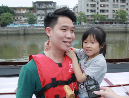 龍舟隊隊員何偉潮:“我老婆和女兒都喜歡龍舟運動,特別是我的女兒,年齡比較小,我覺得從小應該帶她來體驗下家里的傳統(tǒng)龍舟的氛圍,端午節(jié)期間,我們夫妻還會一起去劃龍舟。”