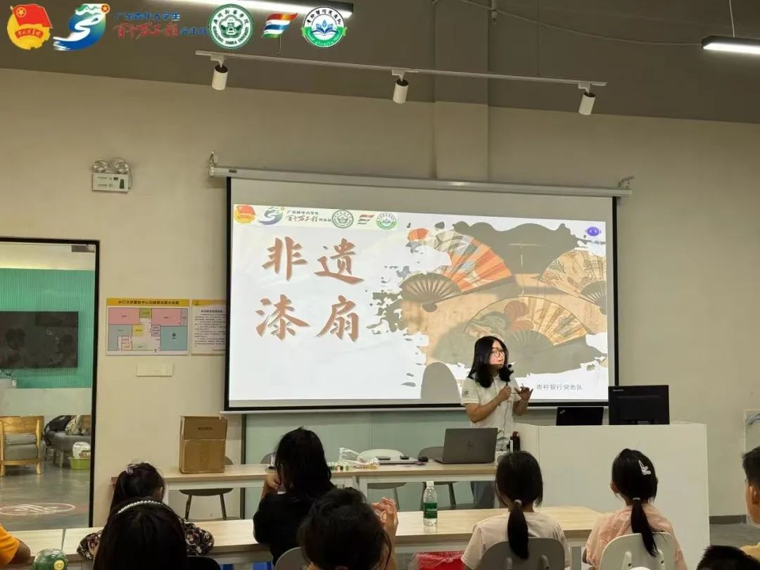 隨后,突擊隊員們為孩子們講述了漆扇的悠久歷史、精湛工藝和文化底蘊,并詳細講解了漆扇的制作流程和浸染彩繪方法,讓知識在輕松愉悅的氛圍中傳遞。