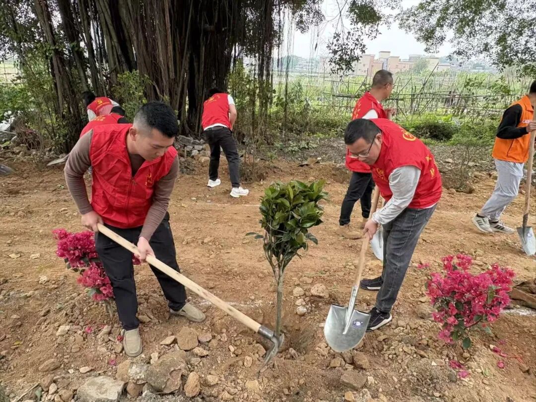 活動現場,梁毅渝、劉劍鋒、胡萬程等市鎮領導帶頭垂范,與鎮村黨員干部、企業代表、志愿者們齊心協力、共同添綠。