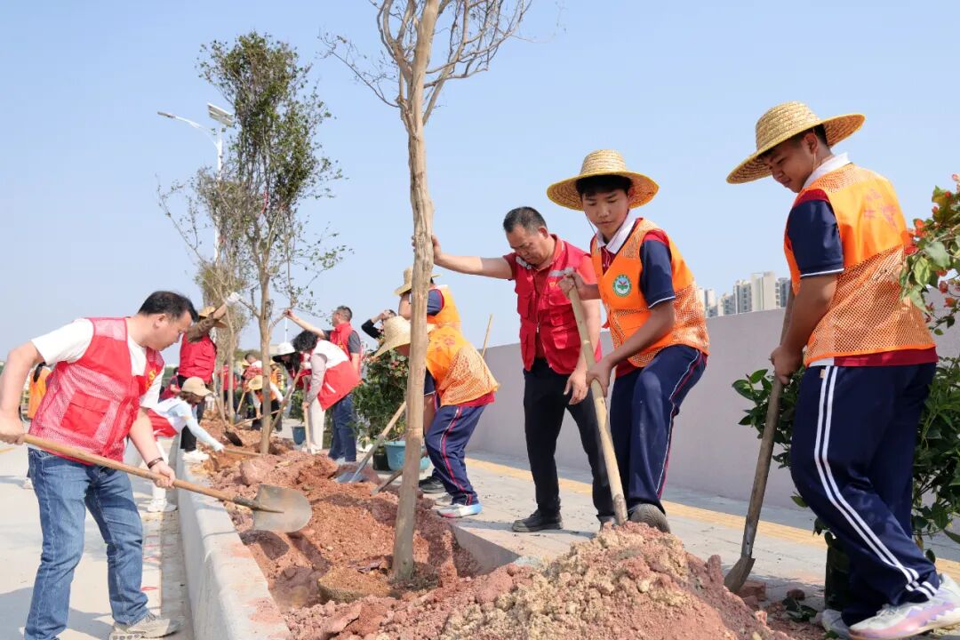 來自慶揚初級中學的學子們也加入了義務植樹活動,他們不畏辛勞,團結合作,用雙手種下一棵棵樹苗,用汗水澆灌綠色的希望,同時把責任與期盼一同種進春天的土地里。