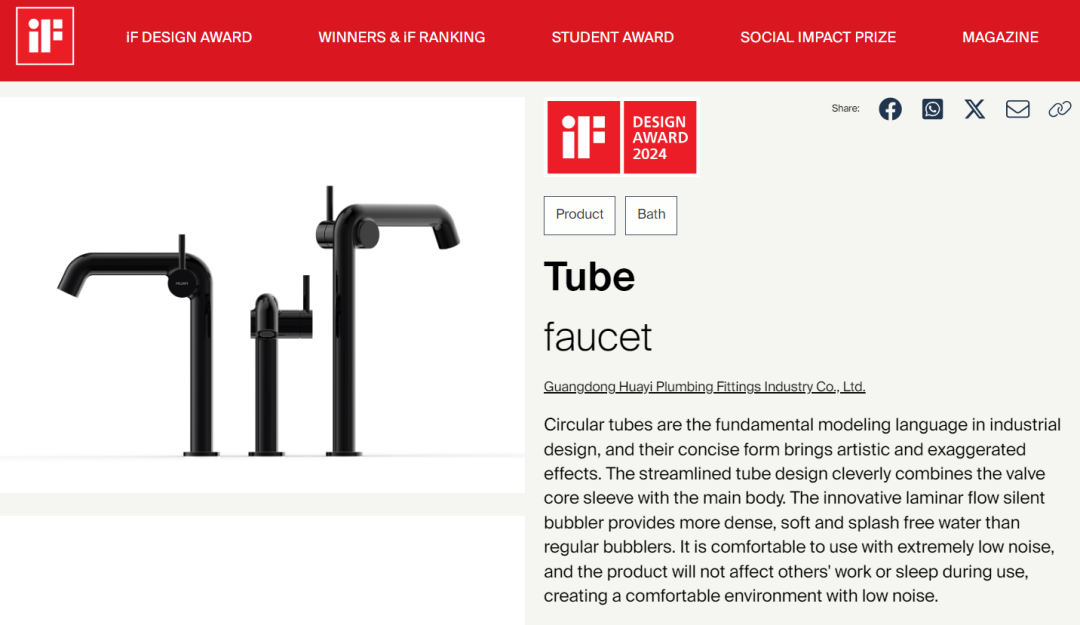2024開(kāi)局,華藝就打響開(kāi)門(mén)紅“第一炮”!近日,2024德國(guó)IF設(shè)計(jì)大獎(jiǎng)公布最終獲選名單,在這場(chǎng)權(quán)威的國(guó)際設(shè)計(jì)盛宴中,華藝衛(wèi)浴參選的“SWAN電子面盆龍頭”、“Tube面盆龍頭”、“Aquaflex花灑升降桿”憑借出色的設(shè)計(jì)在數(shù)以千萬(wàn)件優(yōu)秀作品中脫穎而出,榮獲2024德國(guó)IF設(shè)計(jì)大獎(jiǎng)。