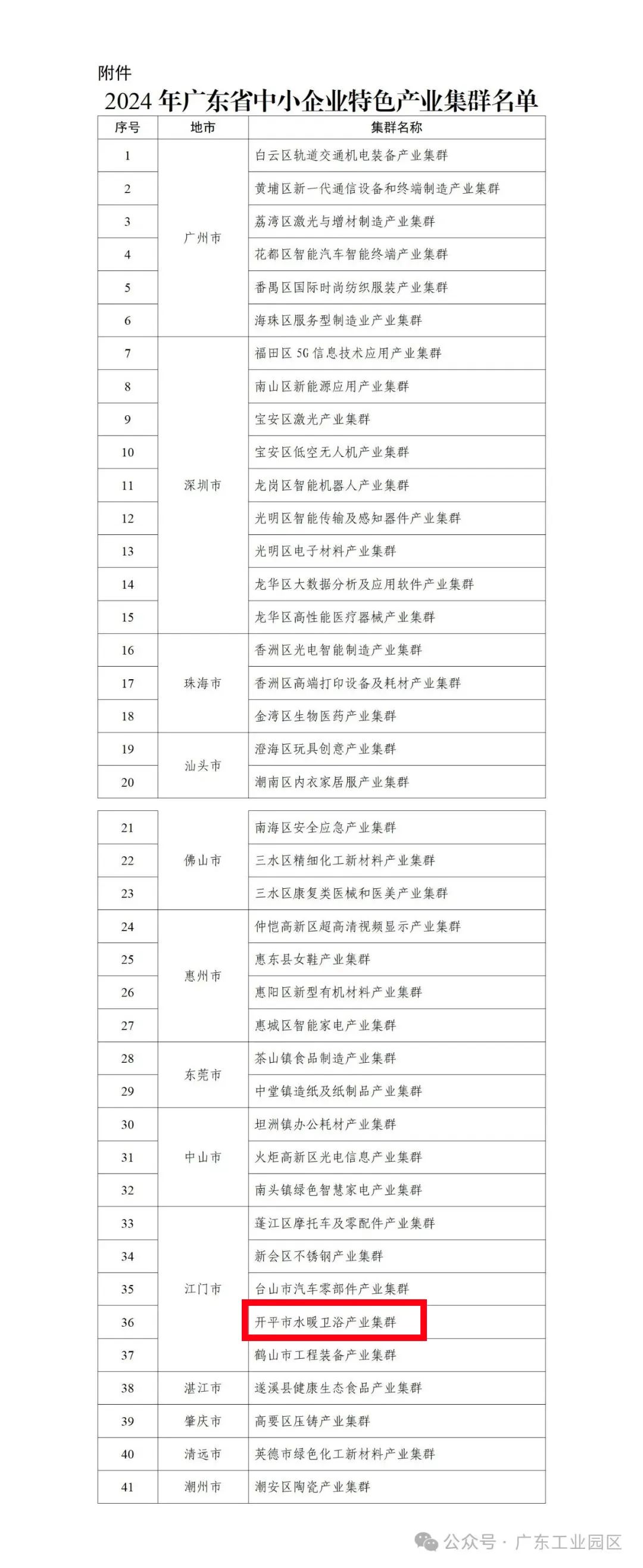 近日,2024年度廣東省中小企業特色產業集群名單已正式公布,“開平市水暖衛浴產業集群”名列其中。