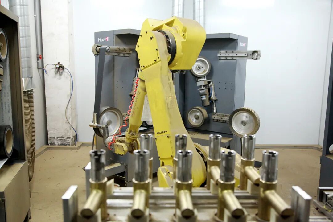 在華藝衛(wèi)浴的自動化生產(chǎn)車間,機(jī)械臂高速運(yùn)轉(zhuǎn),一批批高端水龍頭即將下線